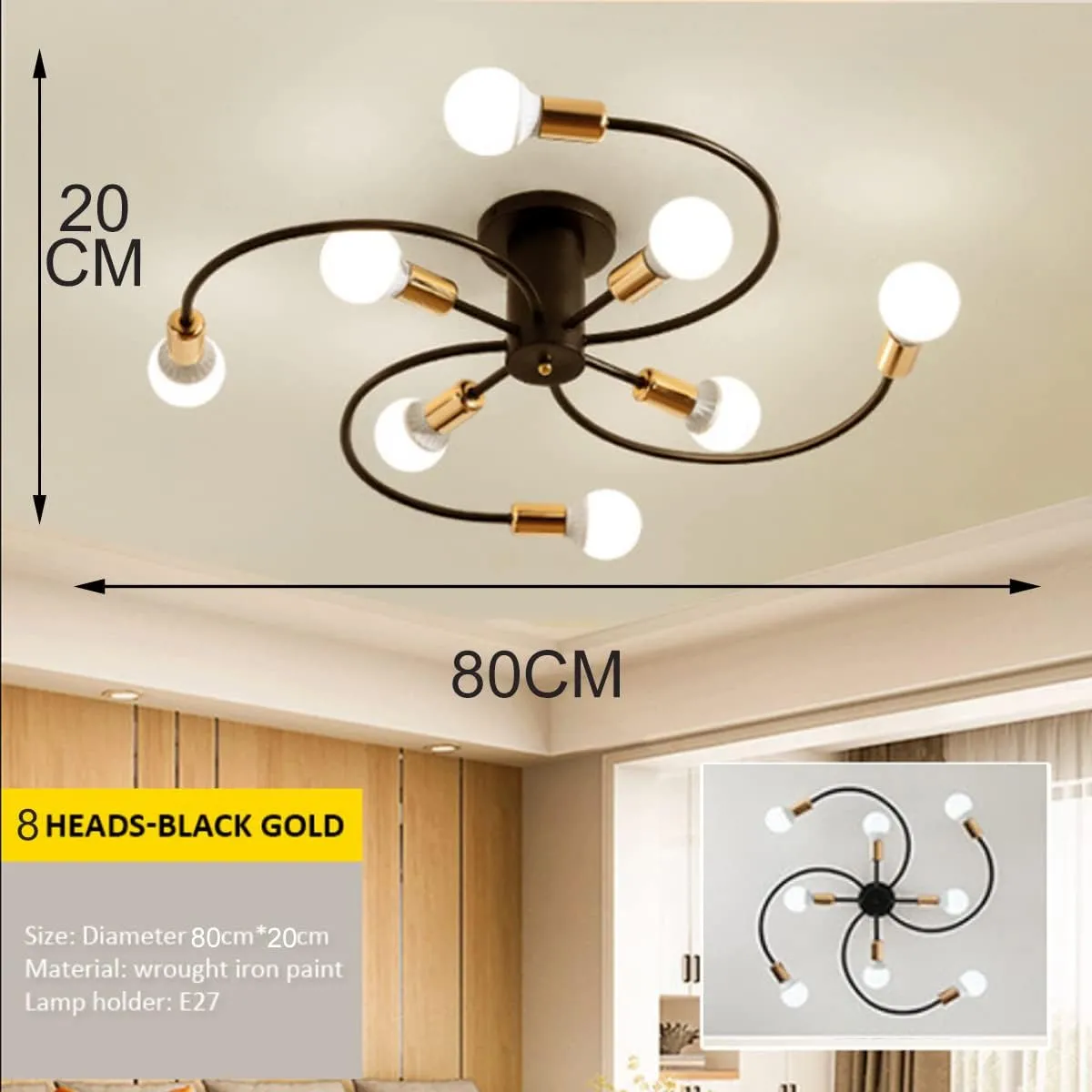 Plafonnier moderne rétro - 8 lumières - Douille E27 - Antirouille