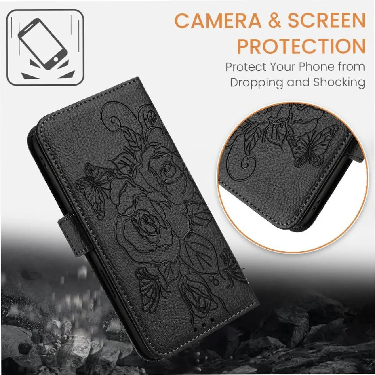 Protection améliorée: L'étui à rabat offre une protection complète contre les rayures, les chutes, les chocs, la poussière et d'autres dommages non désirés. Le couvercle offre une protection supplémentaire pour l'écran de votre téléphone. Les découpes précises garantissent un accès facile à tous les ports, haut-parleurs, caméras, boutons et autres fonctionnalités.