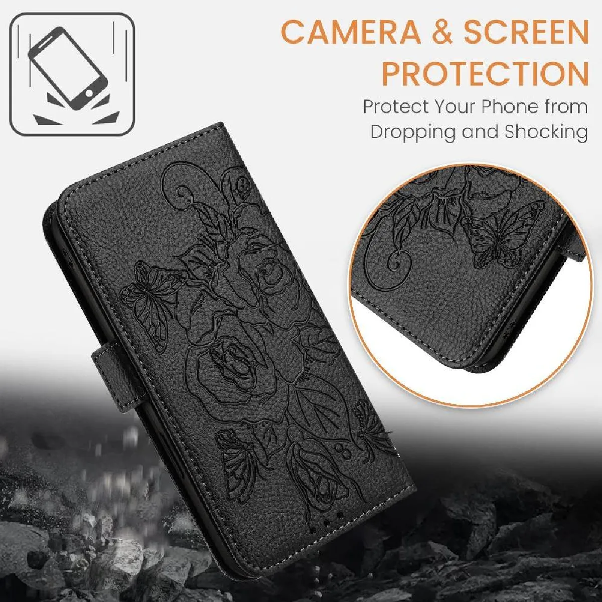 Design de motif ROSE exquis: le portefeuille Étui Pour femmes présente un motif de fleurs roses en relief en 3D. Le cuir synthétique haut de gamme et la matière intérieure en TPU souple offrent une touche très confortable. Cet étui de folio ajoute de la personnalité et du charme tout en offrant protection et commodité.