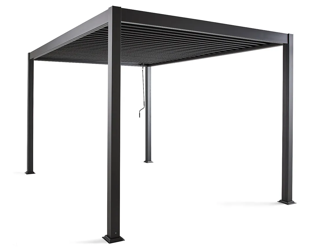 - Type : pergola bioclimatique autoportante, à fixer au sol