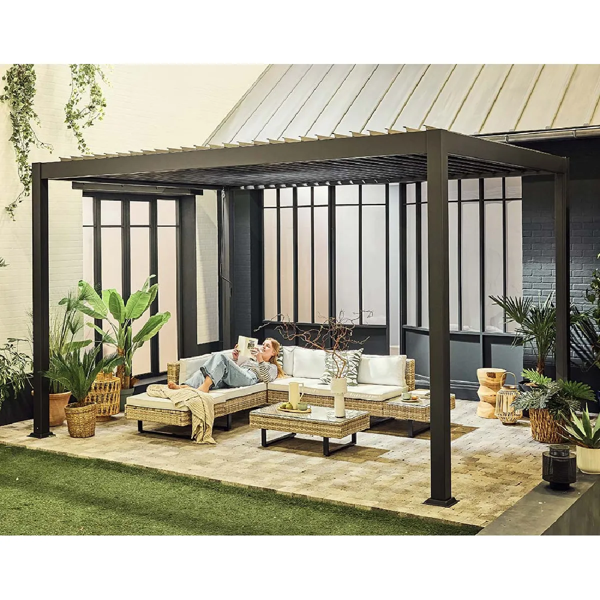 Pergola bioclimatique - Lames orientables - Structure aluminium - À fixer au sol