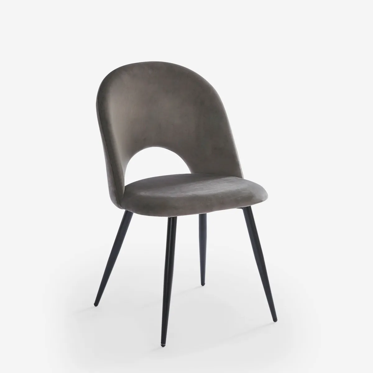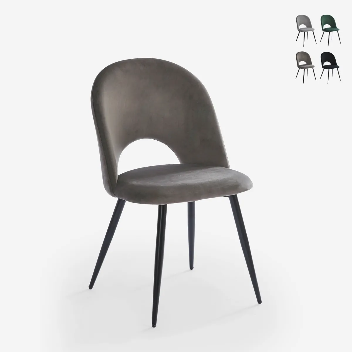 Chaise rembourrée - Velours doux - Pieds métal noir - Design moderne