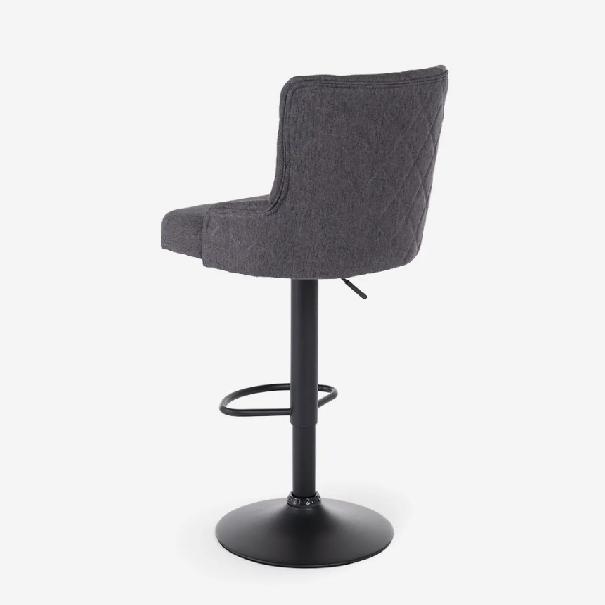 Le siège pivotant sur 360° offre une grande liberté de mouvement pour s'installer au comptoir ou à une table haute. Le rembourrage en tissu matelassé doux avec dossier enveloppant assure un maintien agréable pendant les pauses café comme lors d'un repas. La structure moderne en acier peint noir avec base circulaire favorise la stabilité au quotidien. Grâce au levier de réglage de hauteur, l'assise s'adapte facilement aux différents plateaux. La finition Gris foncé s'intègre à de multiples intérieurs sans imposer de contraste fort, tout en conservant une allure sobre et contemporaine.