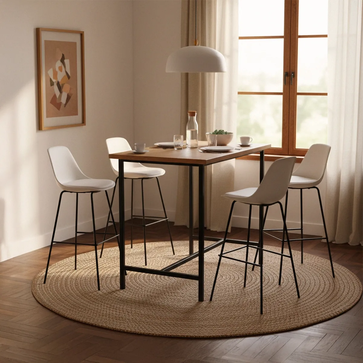 Ses dimensions de 44 x 45 x 101 cm permettent une intégration aisée autour d'un îlot de cuisine ou d'un bar sans encombrer l'espace de circulation. L'hauteur d'assise de 75 cm convient aux plans d'environ 100 à 105 cm. La conception fixe favorise la stabilité, tandis que la forme d'assise aux bords arrondis limite les points de pression pour un confort prolongé lors des petits-déjeuners, repas rapides et apéritifs.