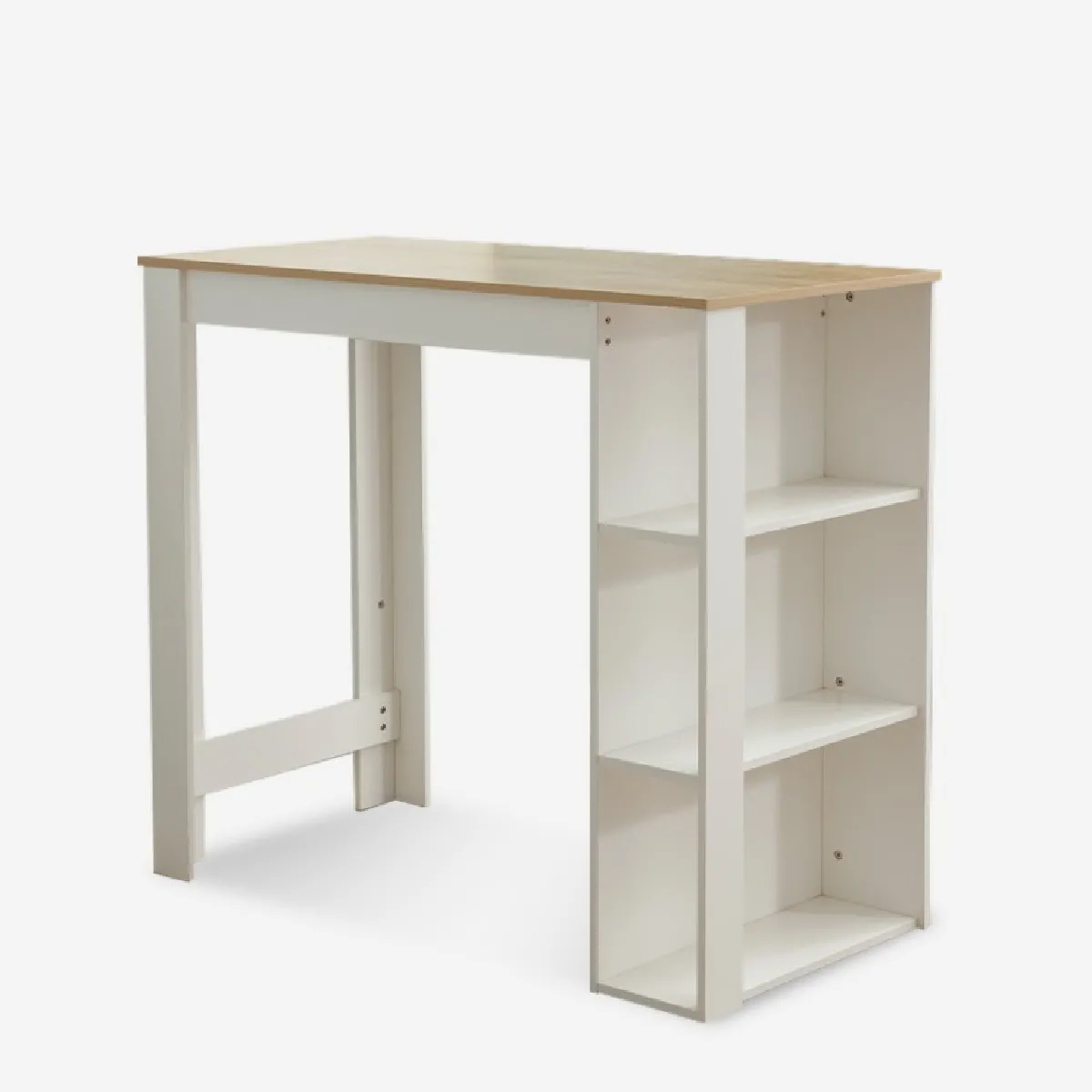 Le coloris Blanc - Chêne et la forme rectangulaire s'intègrent dans une cuisine au style moderne. Le panneau de particules offre une surface lisse pour un nettoyage simple après utilisation. Non pliable et non extensible, le meuble reste stable pour les usages quotidiens. La configuration de table haute de cuisine convient aux espaces restreints où l'on recherche un poste polyvalent entre repas, préparation et travail.