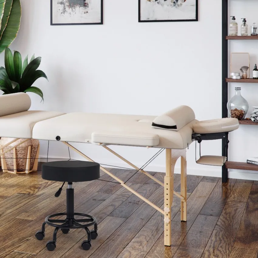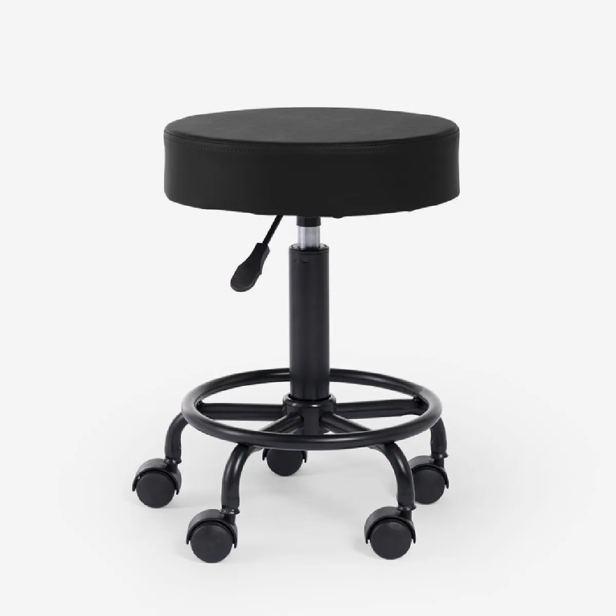 L'assise ronde en mousse dense offre un soutien constant pour limiter les points de pression et favoriser une posture plus naturelle durant de longues sessions. Grâce au revêtement en similicuir agréable et facile à entretenir, le nettoyage se fait rapidement après chaque usage. La hauteur se règle par levier pour s'adapter à différents plans de travail, tandis que le siège pivotant à 360° facilite les mouvements sans effort. Sa ligne sobre convient à de nombreux environnements, des cabinets médicaux et laboratoires aux salons de beauté, et peut aussi remplacer une chaise de bureau classique. La base intègre un repose-pieds circulaire pour une position stable et un appui supplémentaire.