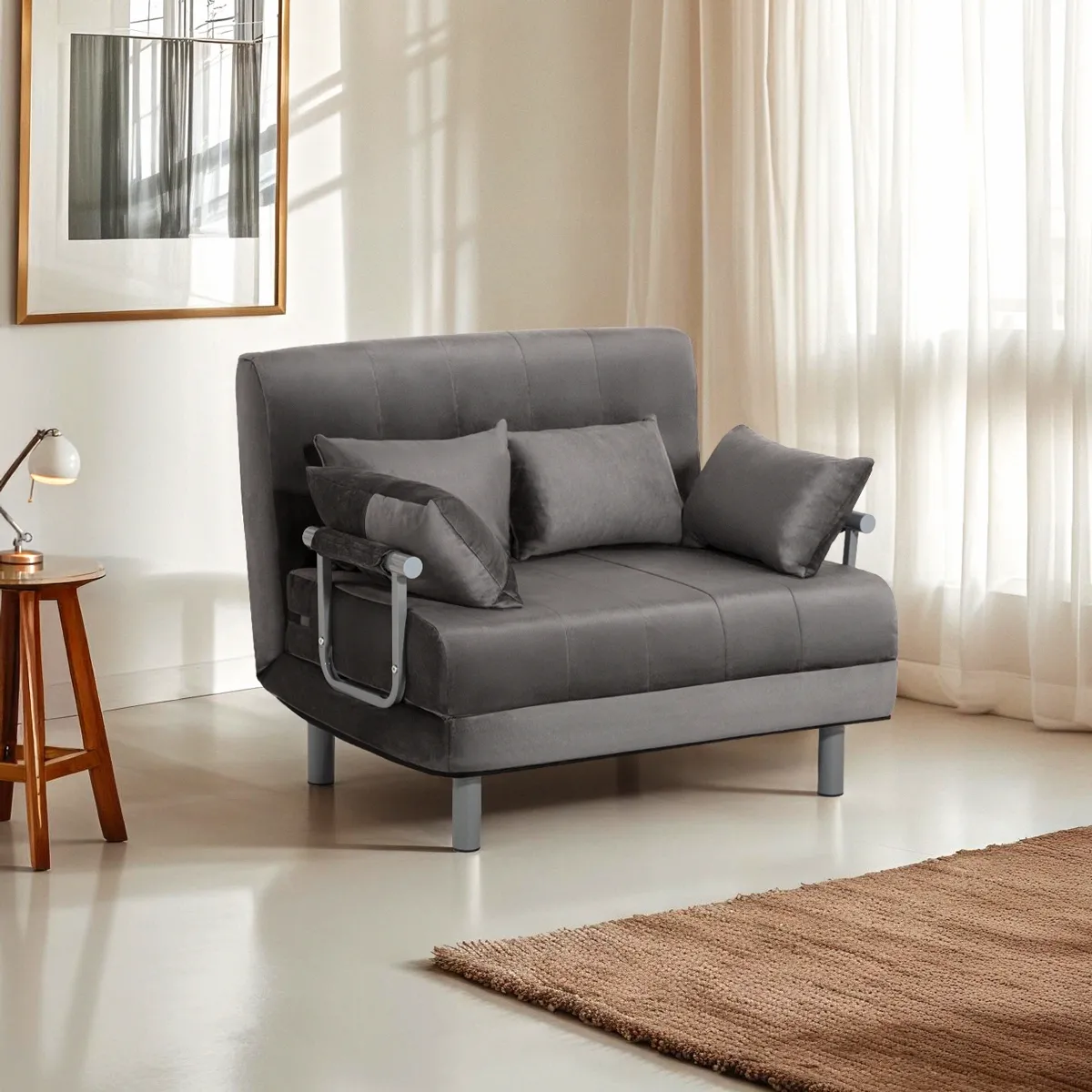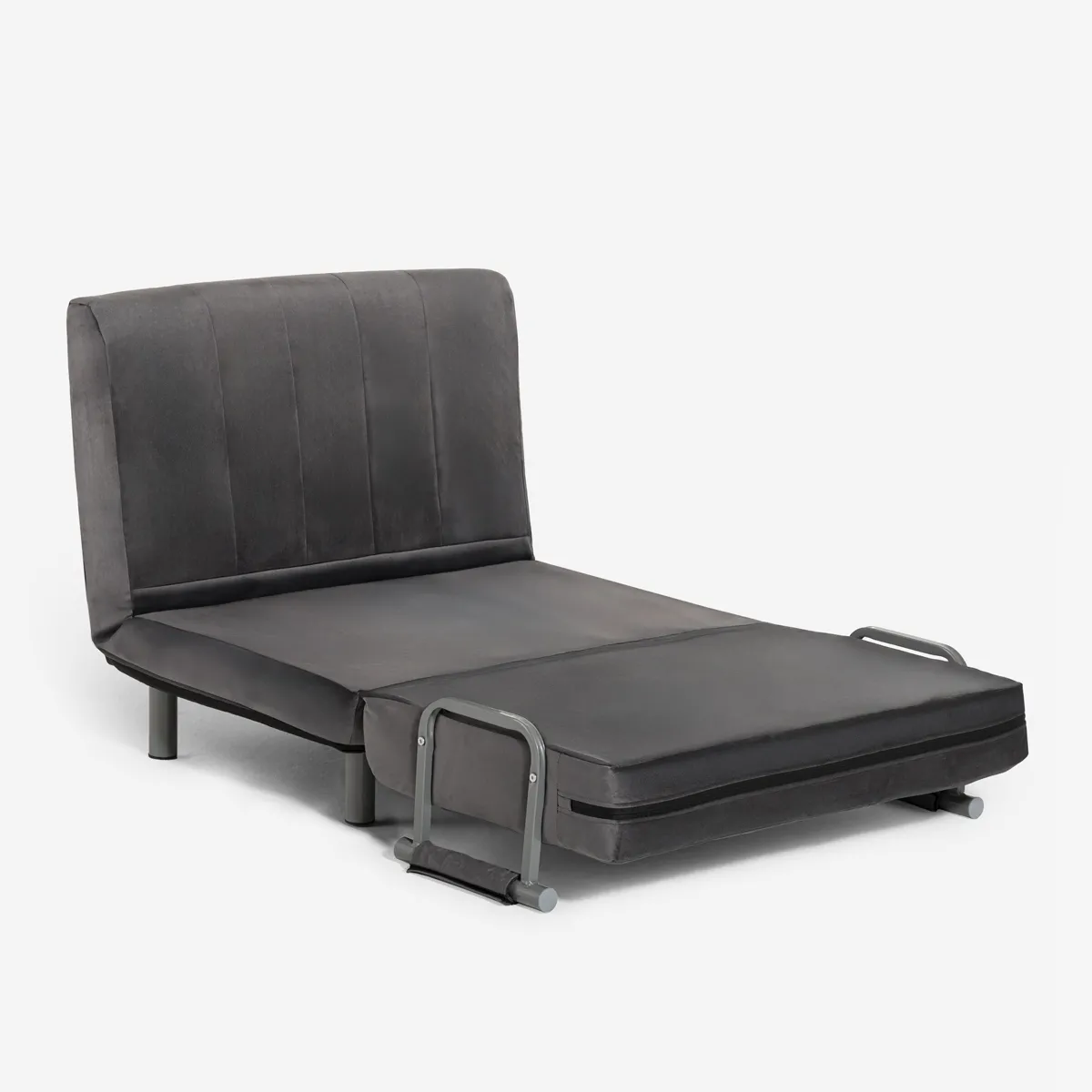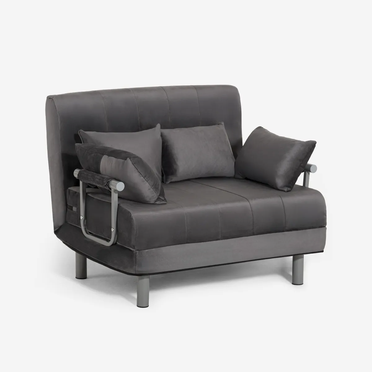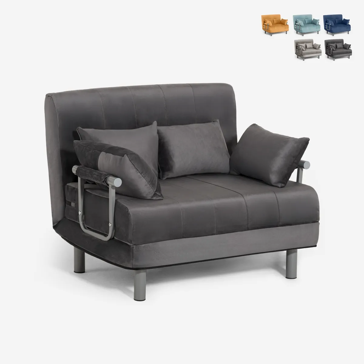 Fauteuil-lit moderne - Velours - Quatre coussins - Accoudoirs en métal