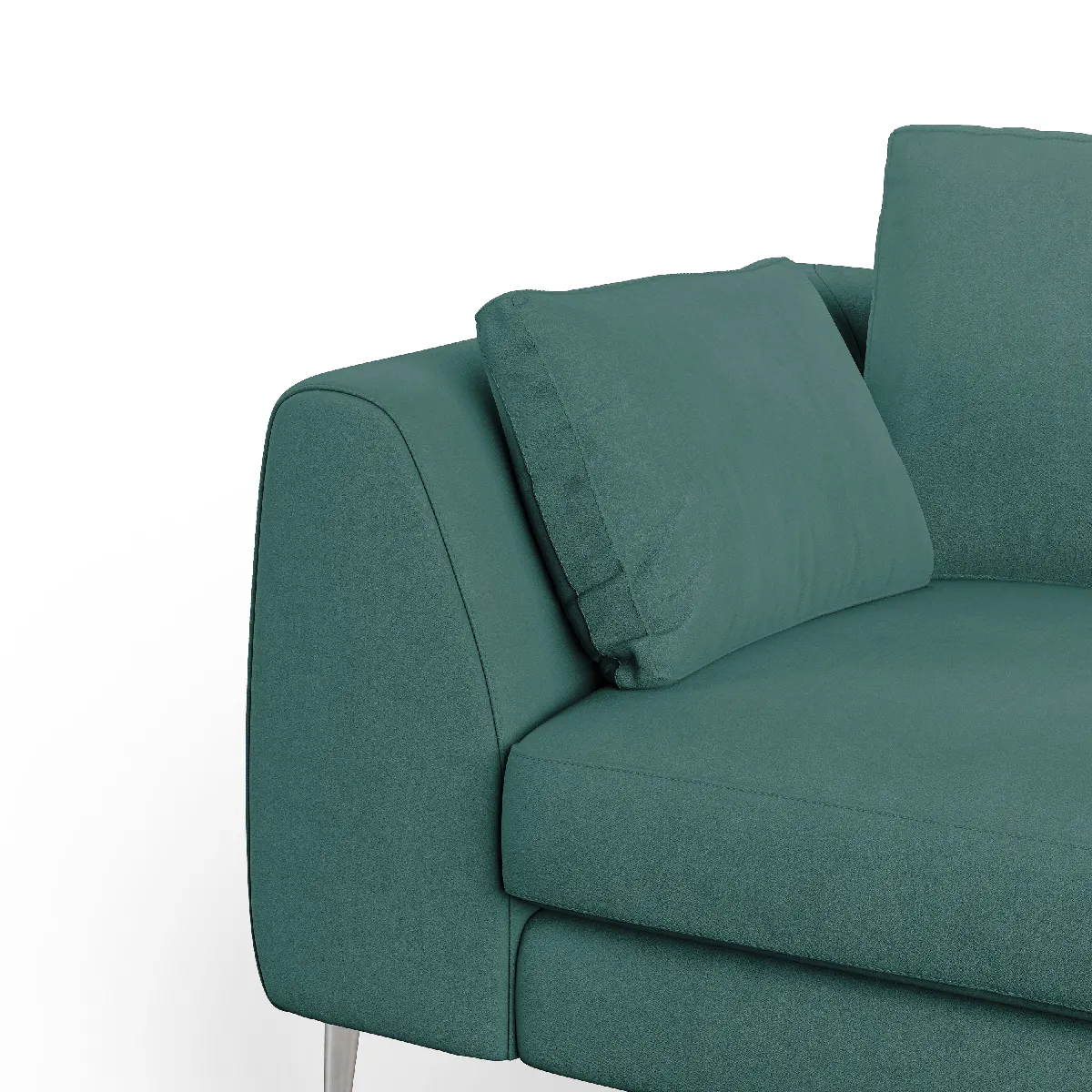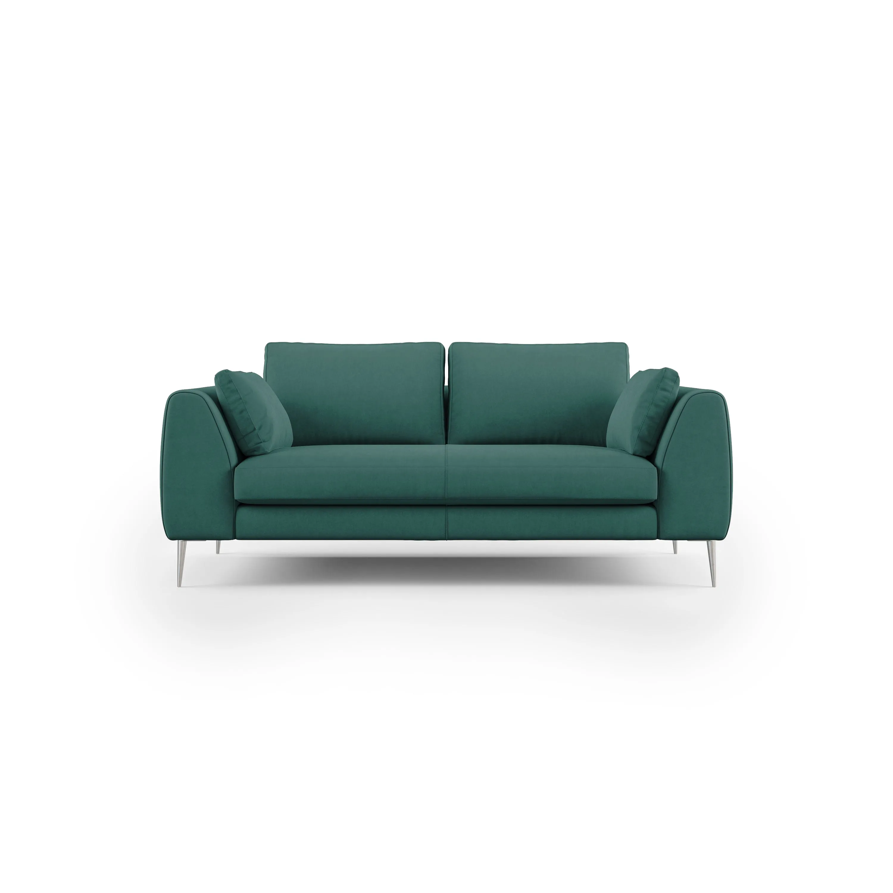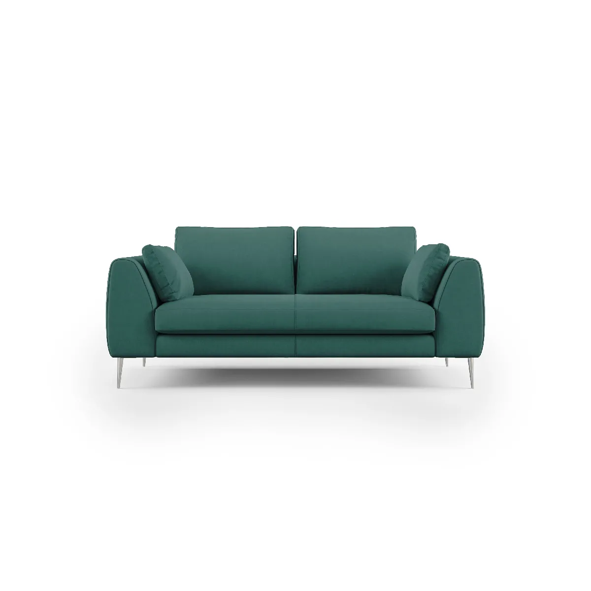 Un salon compact gagne en fonctionnalité grâce à une assise étudiée et à des dimensions équilibrées. Ce modèle 2 places en microfibre offre une texture douce et régulière, tandis que les lignes sobres et le style design facilitent l'intégration dans des intérieurs actuels. Les coussins de dossier indépendants en flocons se repositionnent selon l'activité, pour une posture plus droite ou plus détendue. Sa structure en acier avec pieds chromés de 14 cm apporte une stabilité fiable et un dégagement au sol pratique. La couleur bleu canard crée un accent discret, sans surcharger l'espace. La mousse polyuréthane soutient l'assise pour un confort constant au quotidien.