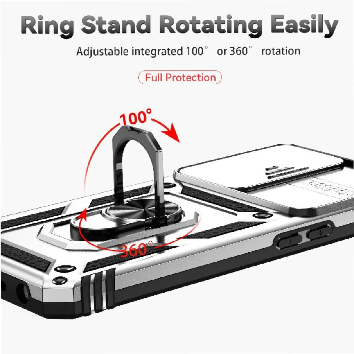 Étui de téléphone - Support rotatif - Anneau magnétique - Design industriel - Argent