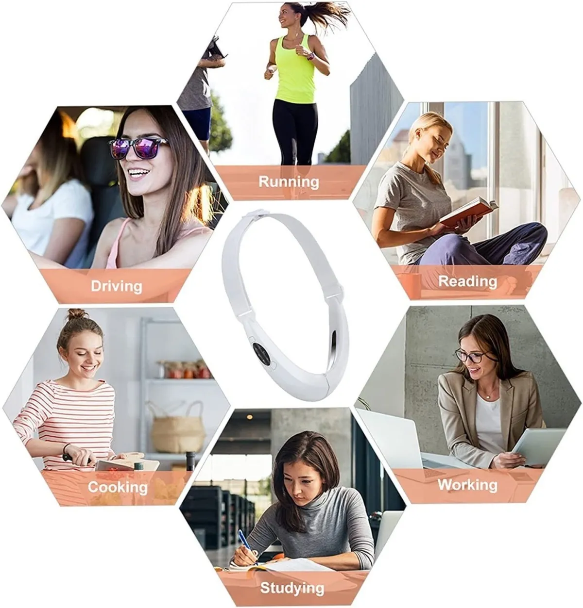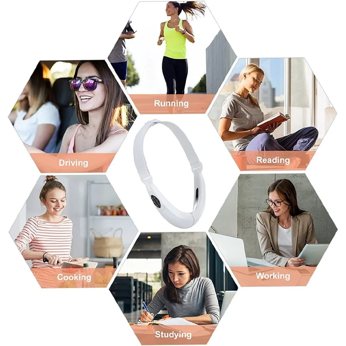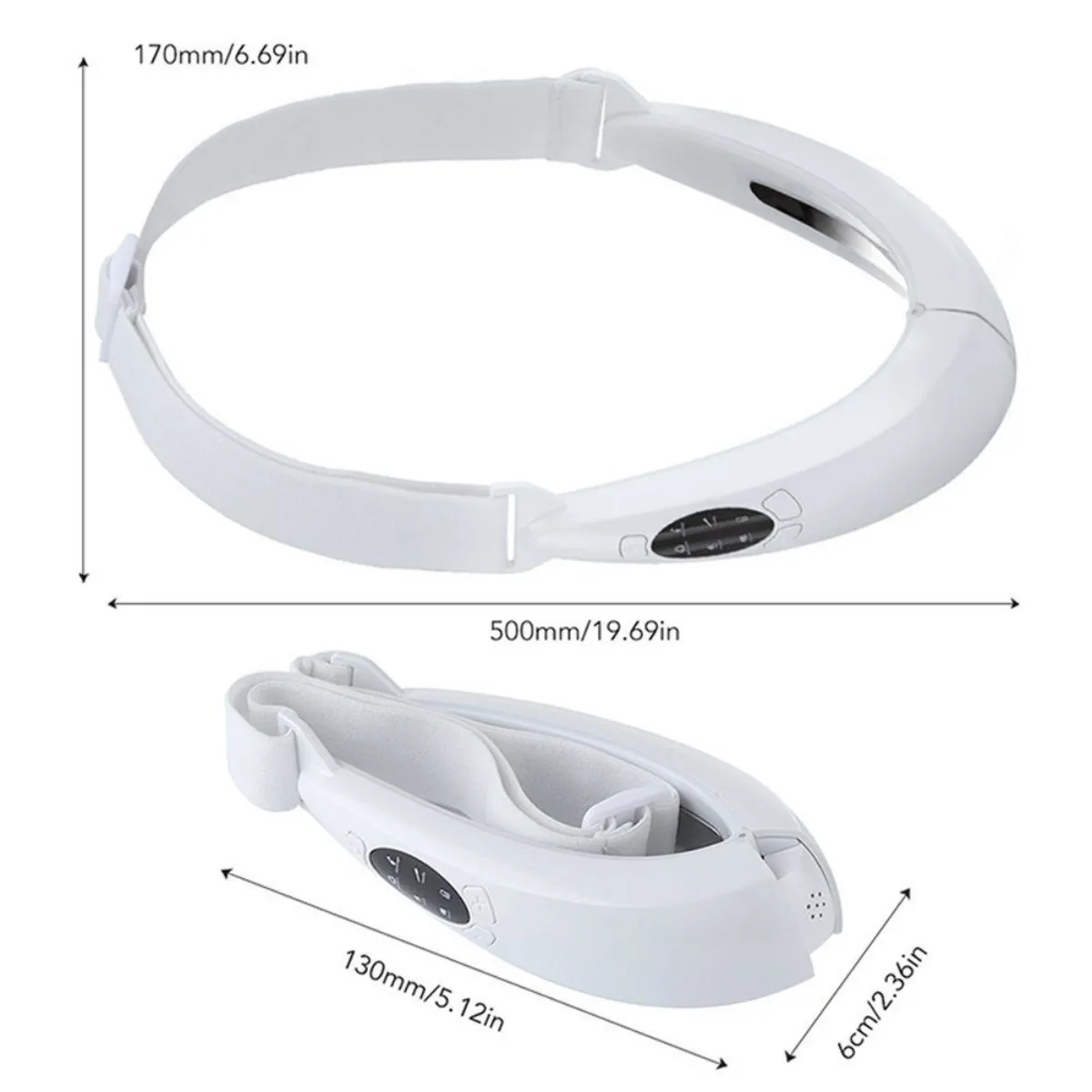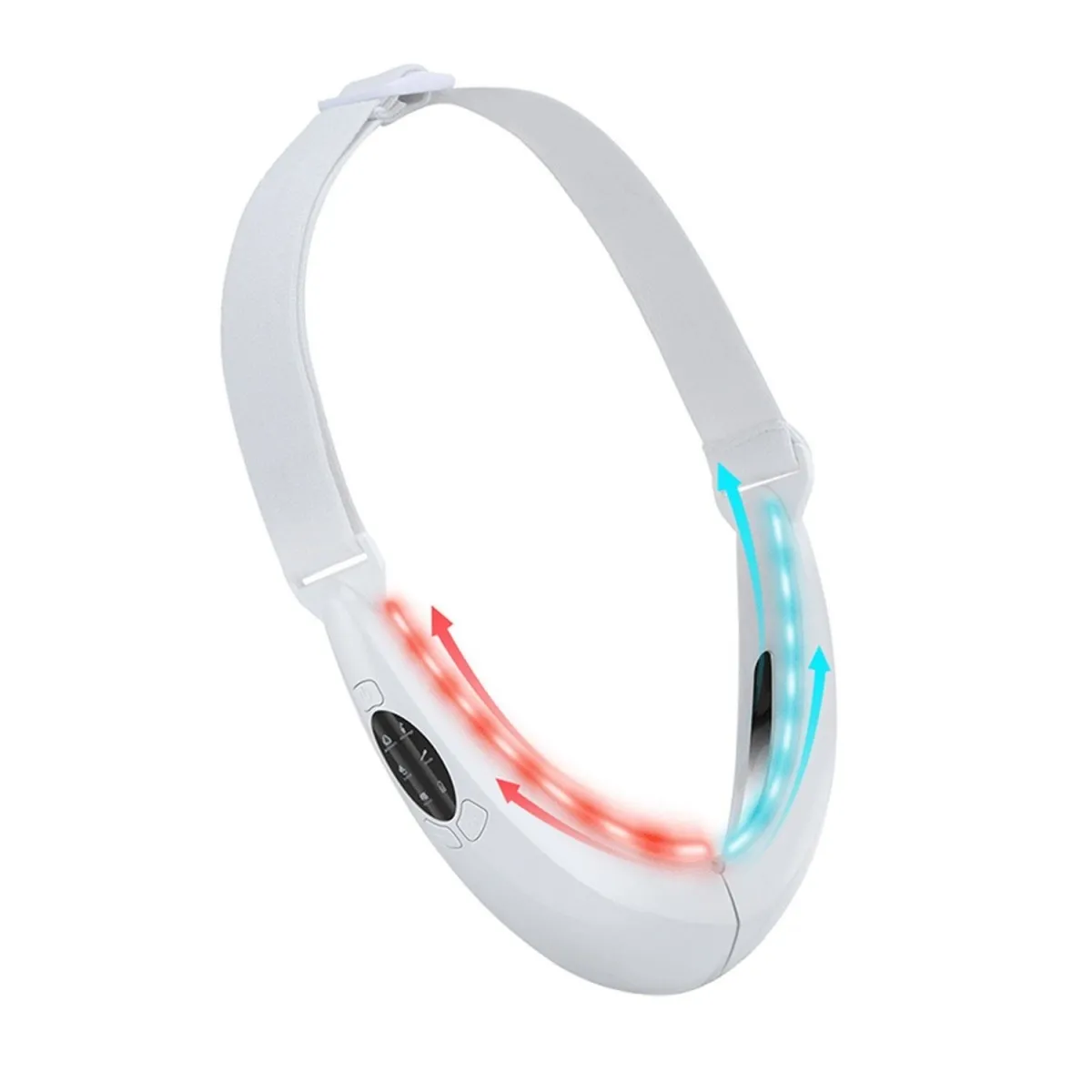 Le serretête réglable facilite l'ajustement de l'angle en V de 26 à 75 degrés pour un maintien stable et une pression homogène sur les joues et la mâchoire. L'utilisation est simple : alimentation USB, fonctionnement sans fil et sessions de 15 minutes. Après environ 2 heures de charge, l'appareil peut être utilisé 12 à 15 fois, ce qui soutient une routine régulière à domicile ou en voyage. Format blanc, dimensions 50 × 6 × 17 cm, avec une conception pensée pour épouser les muscles du visage.