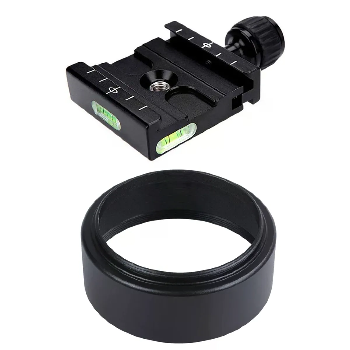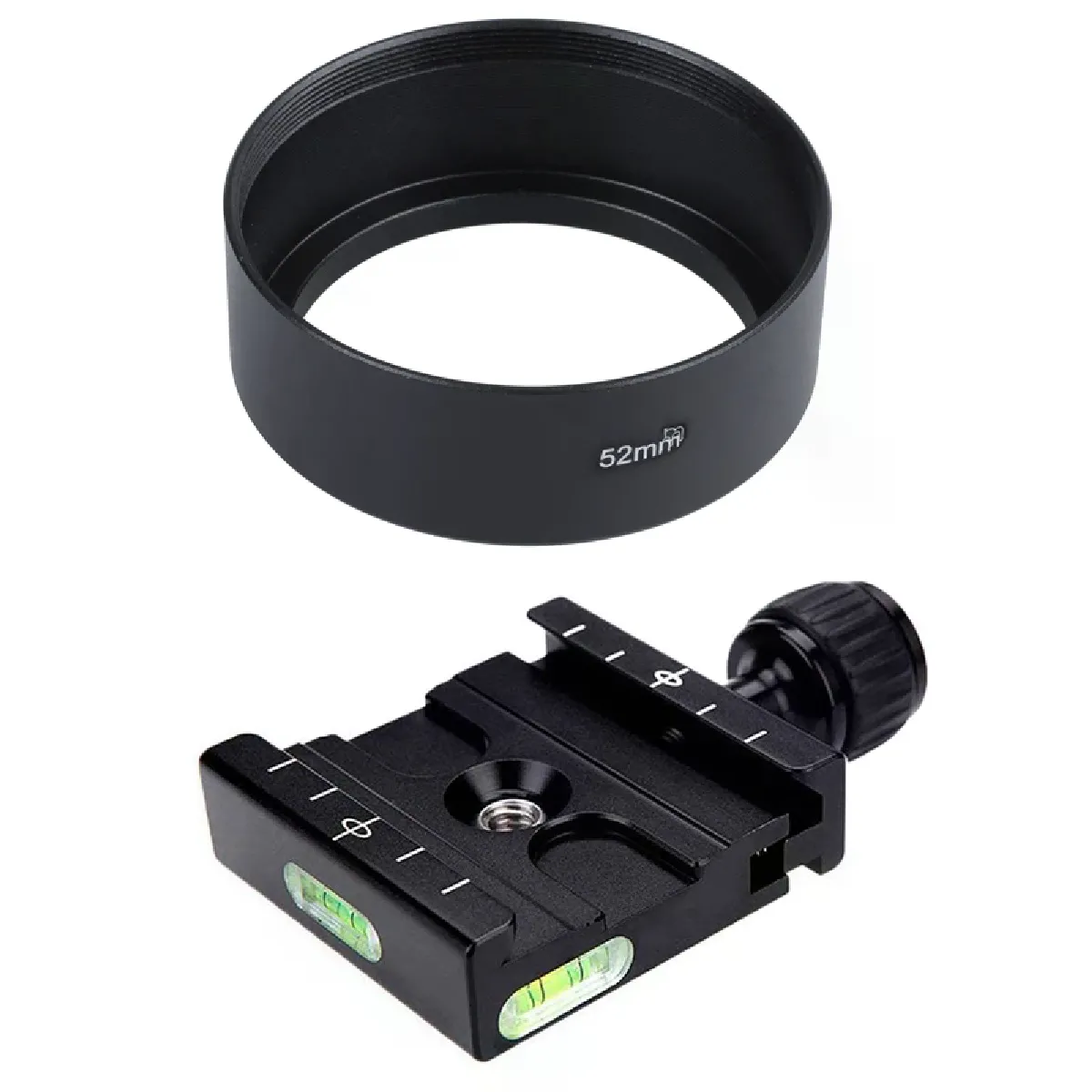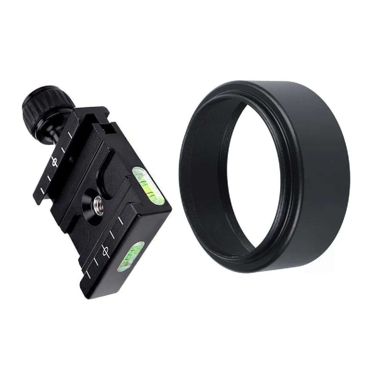 Pare-soleil 1 pièce et support de plaque Yuntai 1 pièceCouleur: noir; Matériau: alliage d'aluminiumPare-soleil:Il offre de multiples fonctions: il tonifie l'objectif de la lumière parasites, il améliore le contraste et la qualité de l'image lorsque le temps est mauvais, il aide à ce que l'humidité et les restes transportés pour le vent n'arrivent pas en