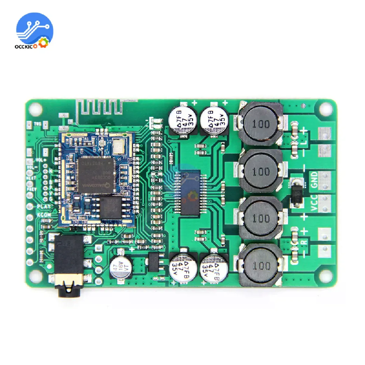 La carte d'amplification optimise une installation discrète grâce à un format de 7.1 × 4.3 cm avec trous de fixation 6.6 × 3.8 cm. La puce QCC3031 / QCC3034 compatible SBC, AAC, aptX, aptX LL et aptX HD assure une transmission stable et une latence maîtrisée. L'entrée audio auxiliaire complète le Bluetooth 5.0 pour des sources filaires. L'alimentation de 8 à 22 V avec protection de polarité inverse permet une intégration flexible dans divers projets. Une antenne IPEX externe personnalisée renforce la réception pour des connexions fiables.