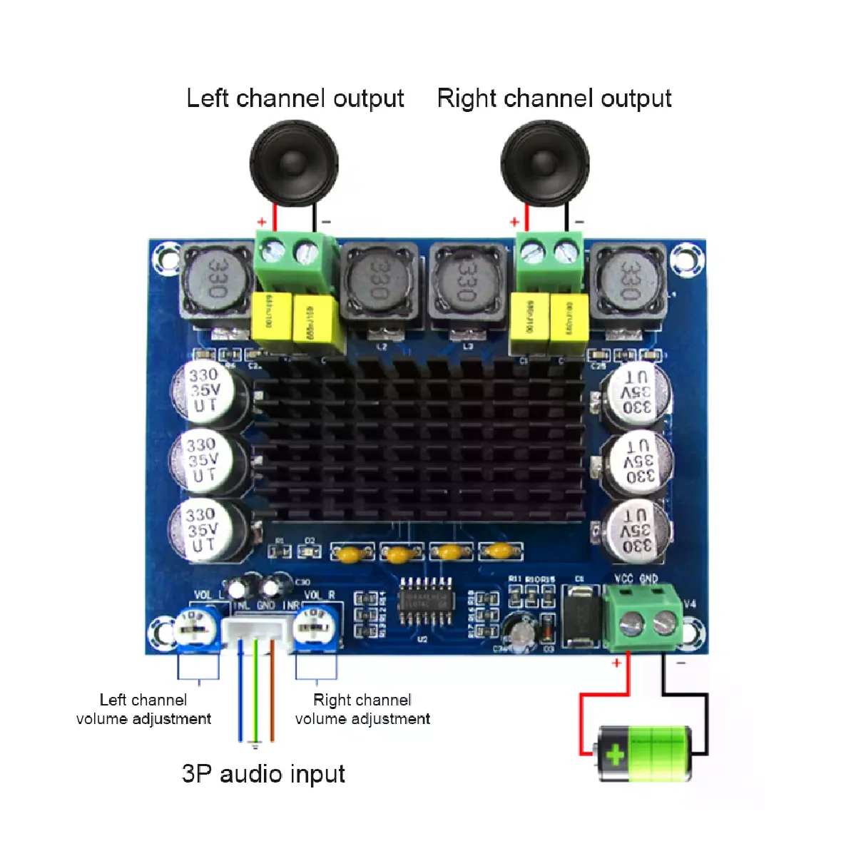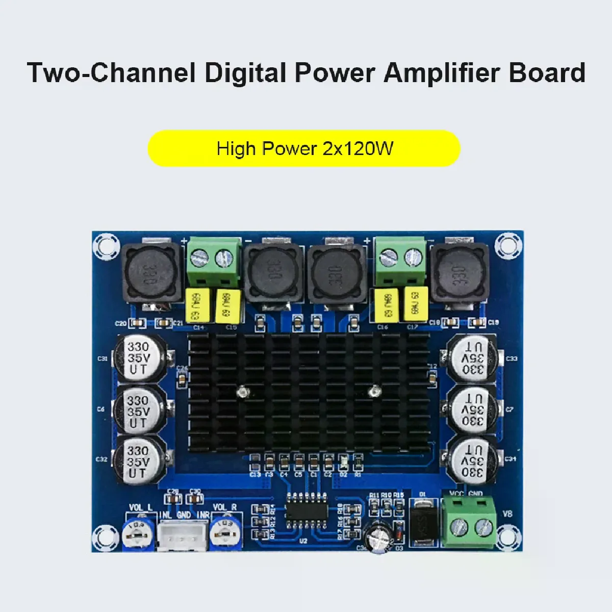 Idéal pour réaliser un système stéréo puissant, ce module délivre 120 W x2 en classe D avec une efficacité supérieure à 90 %, limitant l'échauffement et les pertes au repos. Basé sur le TPA3116D2 avec double canal stéréo, il offre une restitution claire grâce à un rapport signal/bruit de 100 dB. La plage d'alimentation DC 12 à 26 V permet une intégration souple dans de nombreux montages. Le format compact 92 x 69 x 16 mm s'intègre facilement dans un boîtier ou un meuble audio.