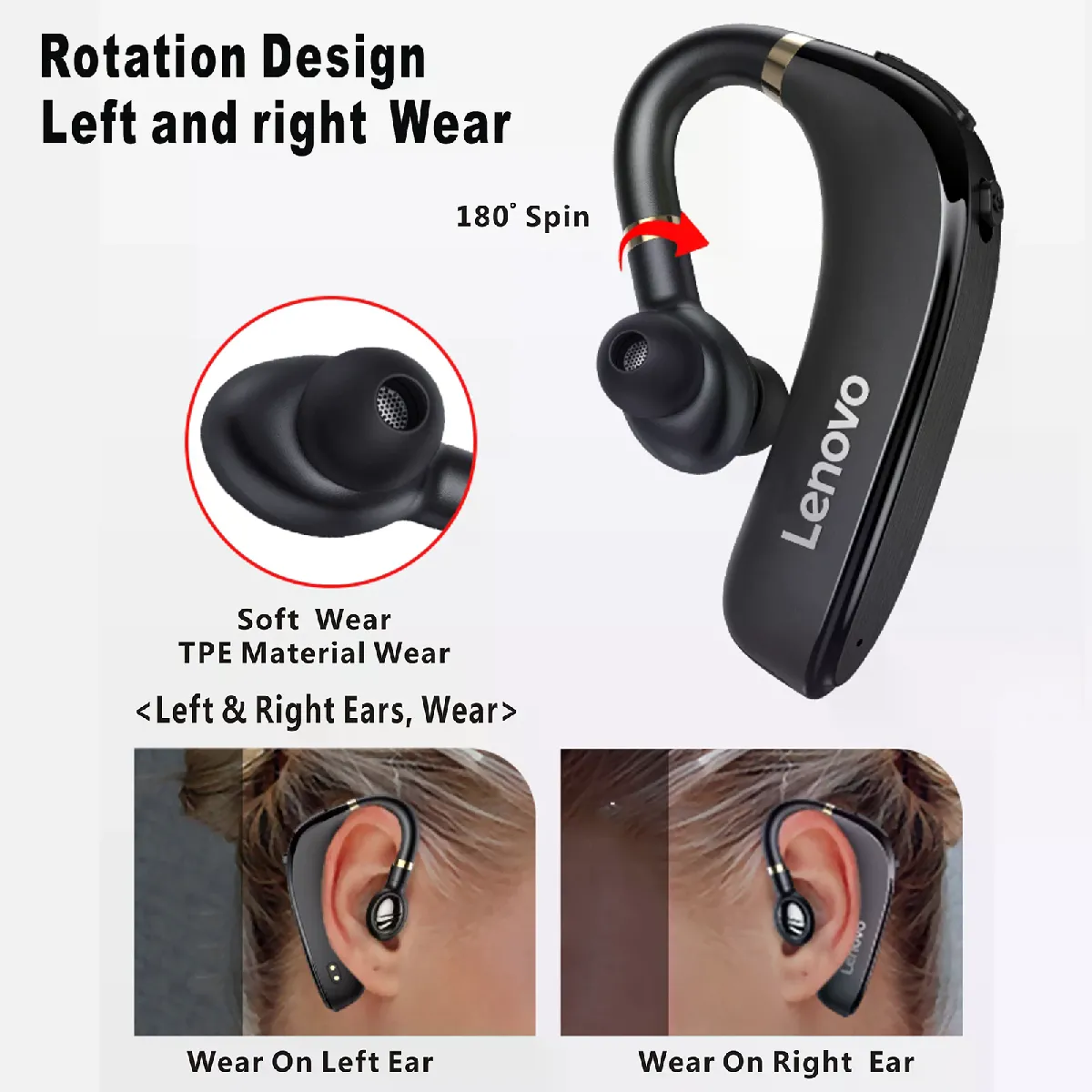 Idéal pour les activités quotidiennes et le sport, ce modèle offre une connexion stable grâce au Bluetooth 5.0 et à une portée sans fil de 10 m. La conception à crochet d'oreille maintient l'écouteur en place pendant les mouvements, tandis que le microphone intégré facilite les appels mains libres. Avec une autonomie annoncée jusqu'à environ 20 heures d'écoute et environ 120 heures en veille, il accompagne de longues sessions sans recharge fréquente. Le format intra-auriculaire favorise une isolation passive et un maintien précis. Livré avec un câble de charge et un manuel, l'ensemble reste simple à utiliser et à entretenir au quotidien.