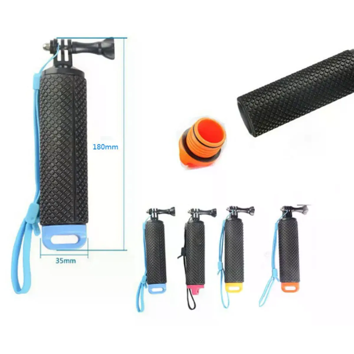 Trépied flottant coloré Bobber avec nouvelle lanière et vis pour gopro hero sj4000 xiaomi yi accessoires de montage de caméra d'action Bobber (poignée flottante) caractéristiques: Conçu pour enregistrer votre appareil photo en cas de chute dans l'eau, il sert également de poignée et de dispositif flottant; flotte tout droit hors de l'eau et sa couleur jaune vif le rend facile à repérer; Le bracelet est réglable.Dimensions: 5.91 pouces x 1.57 pouces x 1.57 pouces (15.0 cm x 4.0 cm x 4.0 cm) Description 1. Poignée flottante pour Gopro Hero 4/3 +/3/2/1. 2. Fabriqué en matériau de haute qualité: ABS. 3. Flotteur conçu pour que votre caméra flotte facilement sur l'eau. 4. Facile et utile pour vous en été.AttentionVeuillez vérifier le flotteur avant utilisation et pour protéger votre gopro et les accessoires attachez la dragonne lorsque vous allez dans l'eau. L'emballage comprend 1 x poignée flottante 1 x Nouvelle lanièreDragonne1 x vis