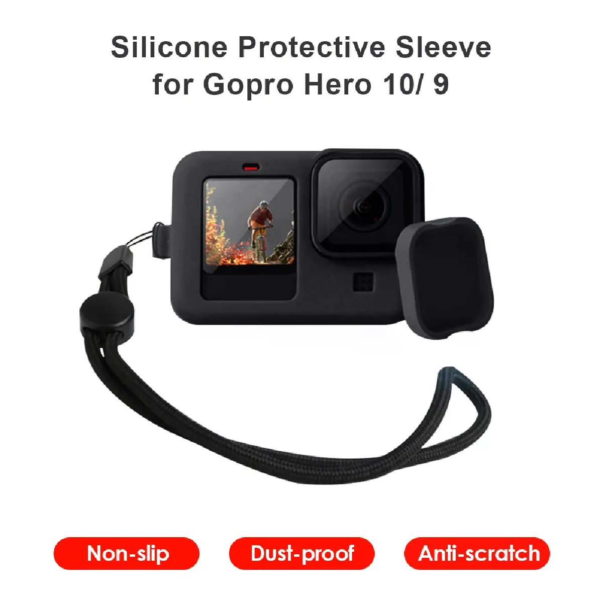 Silicone Cas pour GoPro Hero 10 9 Manches Logement Cadre De Protection Film Bouchon Objectif avec Cordon Sport Caméra AccessoiresCaractéristique:1. Fait de matériaux de haute-qualité, durable;2. La poussière et anti-rayures, efficacement protéger l'appareil contre les rayures;3. Petit, léger et confortable.Spécification:Matériel: gel de siliceCouleur: Noir, Bleu (facultatif)Produit taille: 80*54*32mm/3.15*2.1 * 1.25inApplicable modèle: pour GoPro hero 10/9Note:En raison de l'écran différent et effet de lumière, la couleur réelle de l'article peut être légèrement différente de la couleur a montré sur les photos. Merci!S'il vous plaît permettre 1-2cm de mesure déviation due à la mesure manuelle.1 X Étui En Silicone1 X Bouchon Objectif1 X Anti Perdu Corde
