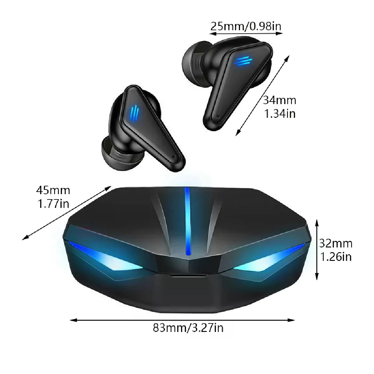 Le temps de charge est d'environ 45 minutes pour les écouteurs et 1,2 heure pour le boîtier via 5 V DC. La portée sans fil d'environ 10 m offre une liberté de mouvement pour la bureautique comme pour le jeu. Les embouts fournis aident à obtenir une isolation passive adaptée, améliorant la restitution des basses et la stabilité. La finition noire et le format compact facilitent le transport au quotidien, du sac à la poche, sans encombrement.