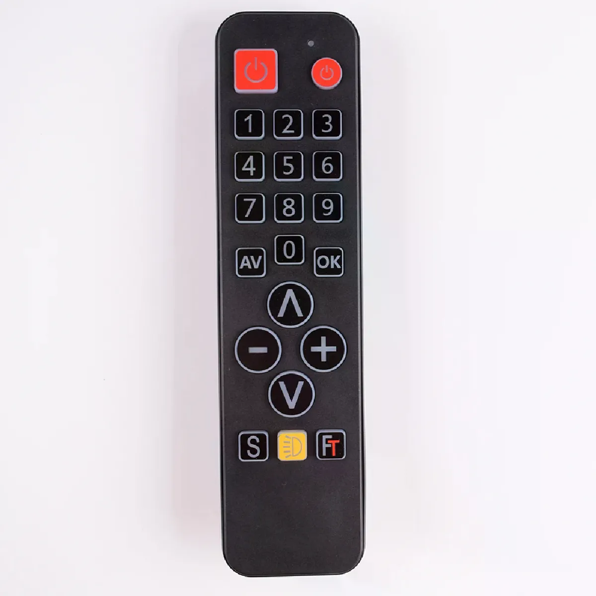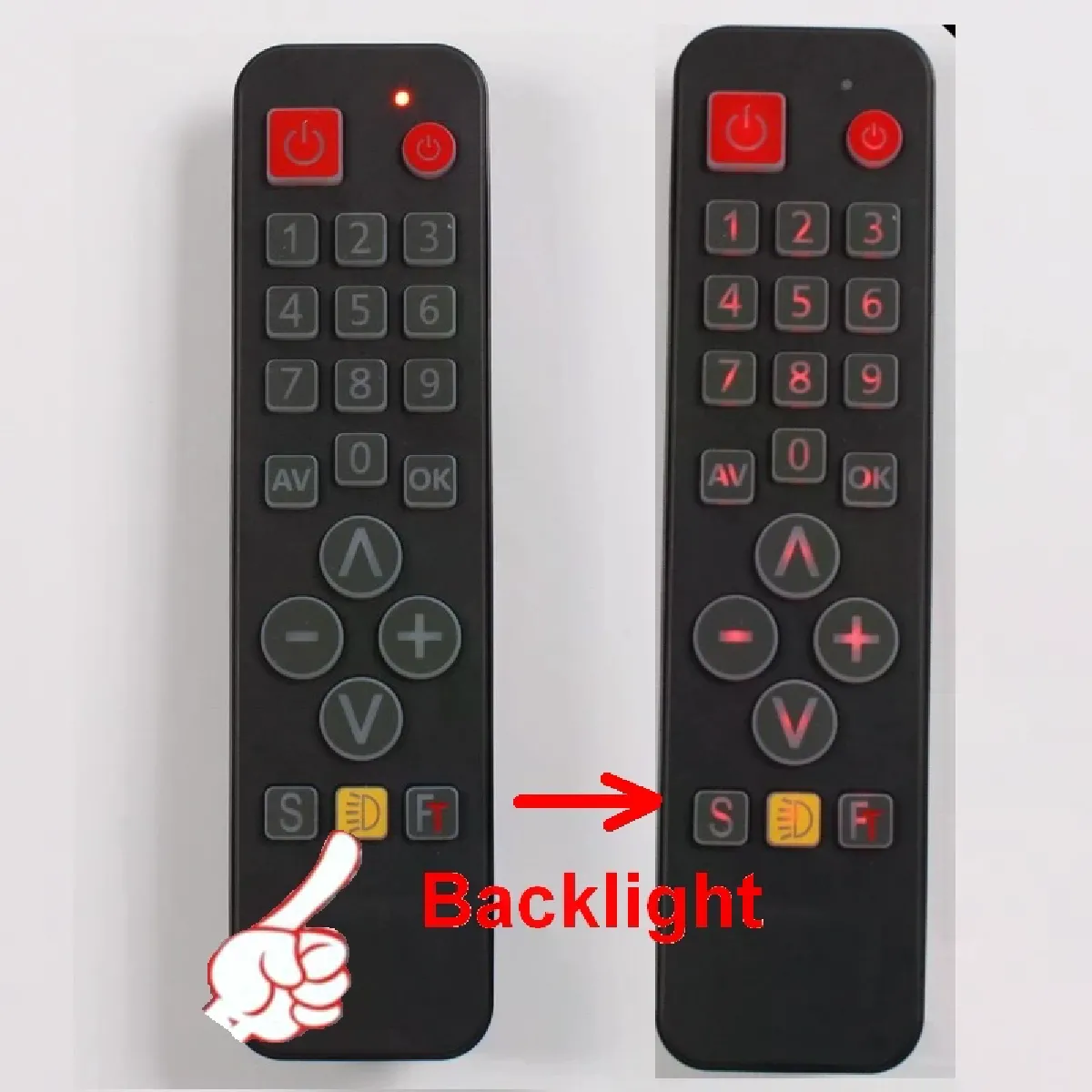 Télécommande d'apprentissage universelle pour TV,STB,DVD,DVB,HIFI, 21 gros boutons facile à utiliser pour les personnes âgées Description du produit: Matériau: étui ABS, boutons en Silicone. Type de batterie: 2xaaa (non inclus) Distance de contrôle: 10 mètres. Courant de veille: <3?A Taille et poids: 18.5*5*2.5cm/80g. Garantie:1 an. Si le produit ne fonctionne pas, vous serez intégralement remboursé.