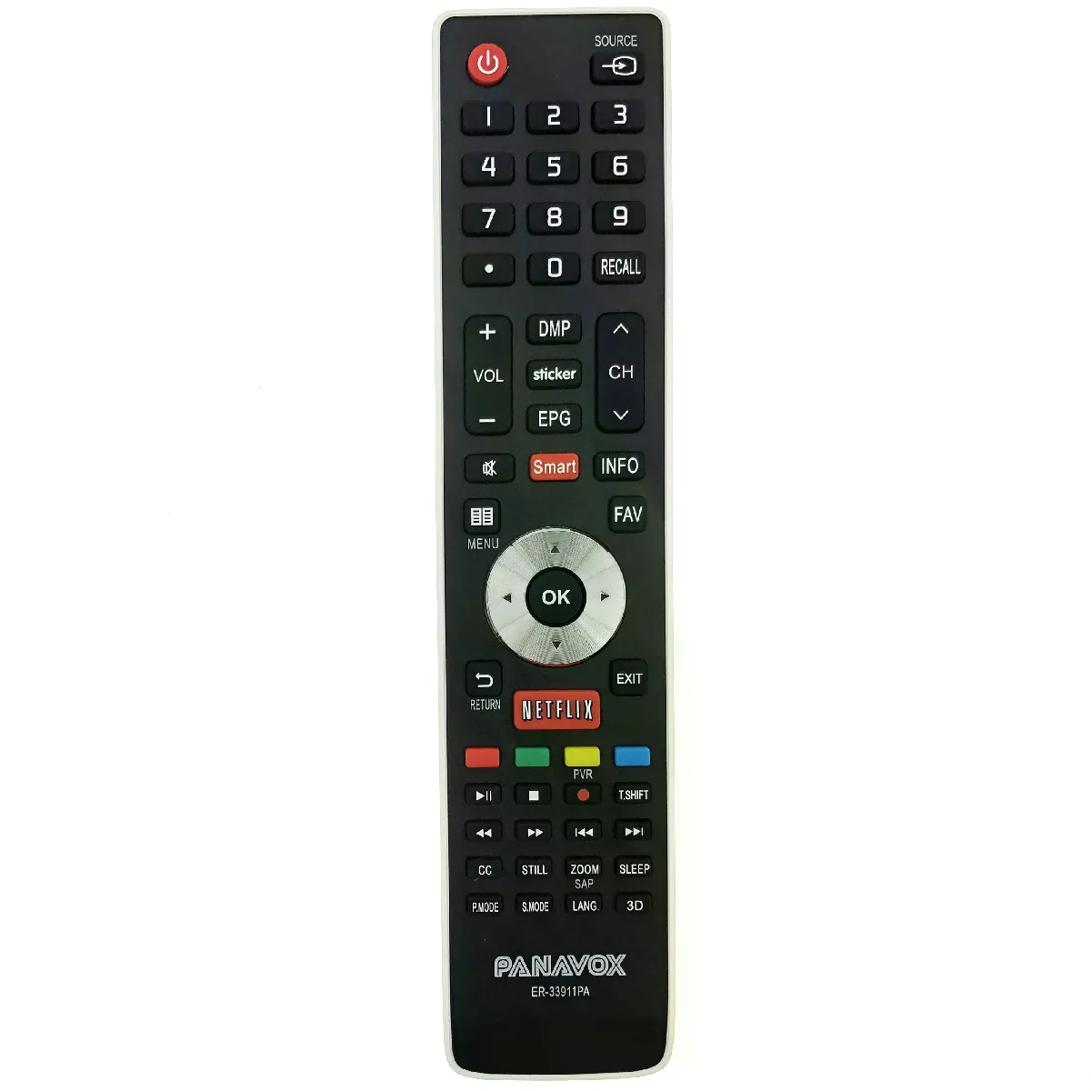 Pensée pour les téléviseurs mentionnés dans la série ER-33911, cette télécommande propose un accès direct aux fonctions Smart et à Netflix, utile pour basculer instantanément entre chaînes et streaming. La mise en route sans parcours technique convient aux usages domestiques, tandis que la signalisation infrarouge stable aide à réduire les répétitions d'appui. La finition noire sobre limite les reflets sous éclairage et met en valeur une organisation de touches facile à mémoriser pour le volume, la navigation et la sélection des sources.