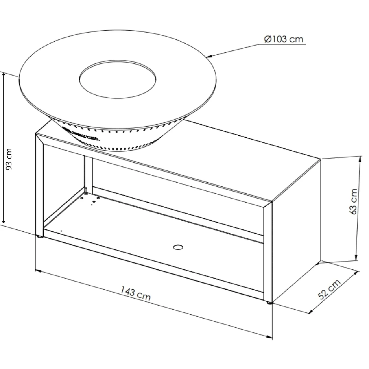 - Plaque cuisson : Acier embouti Ø83cm / épaisseur10mm