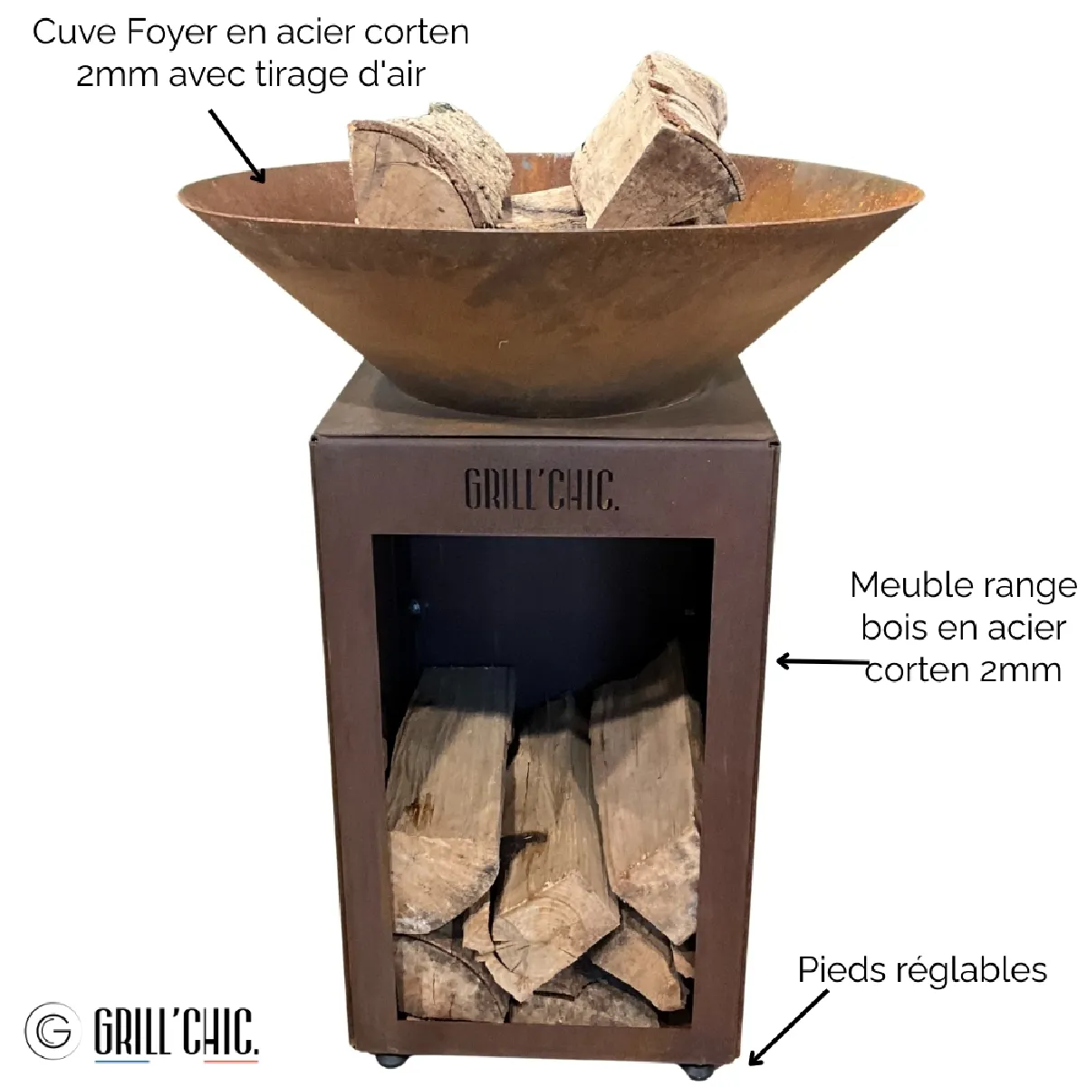 Grill Chic Auvergnat Simple Cuve Corten - Brasero Rond avec Rangement Bois |