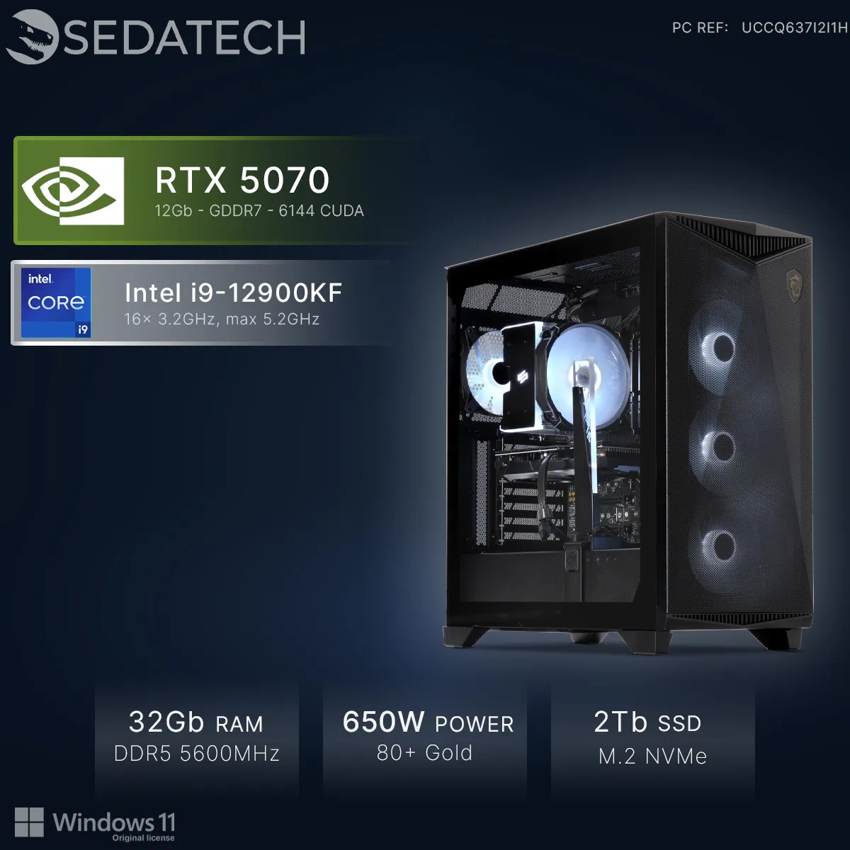 Sedatech PC Gamer ATX ARGB • Intel i9-12900KF • RTX5070 • 32Go DDR5 • 2To SSD M.2 • Windows 11