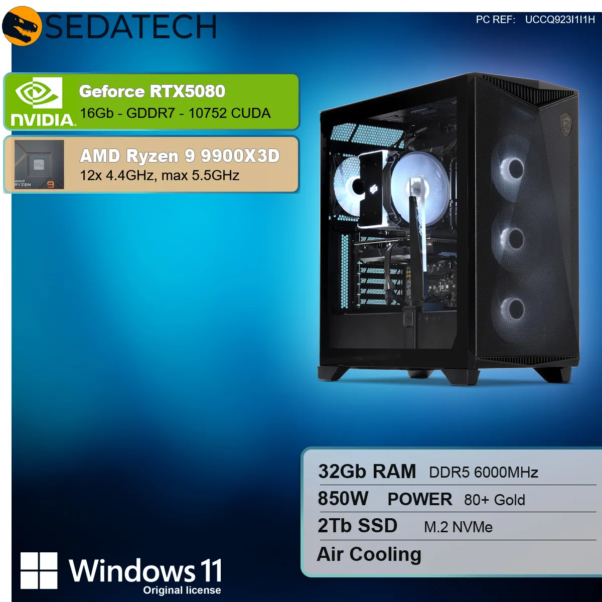 Sedatech PC Gamer Pro ATX ARGB • AMD Ryzen 9 9900X3D • RTX5080 • 32Go DDR5 • 2To SSD M.2 • Windows 11