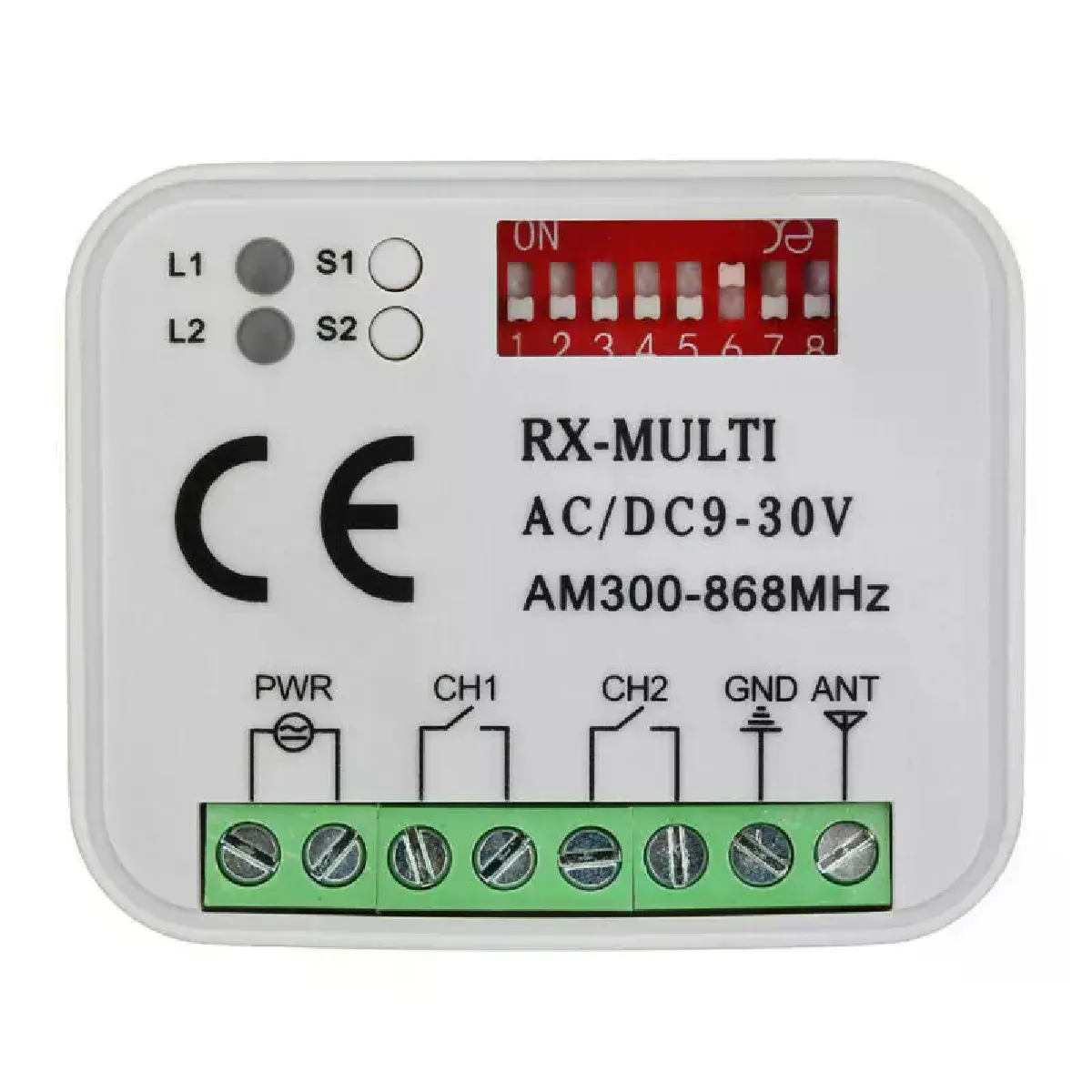 Récepteur de garage - Fréquence 300-900 MHz - Code roulant/fixe - 2 canaux