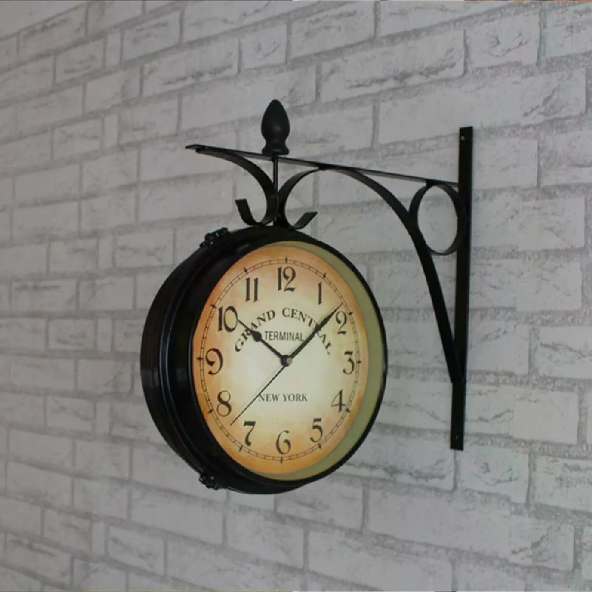 Horloge murale rétro - Double face - Fer forgé - Support extérieur - Style européen