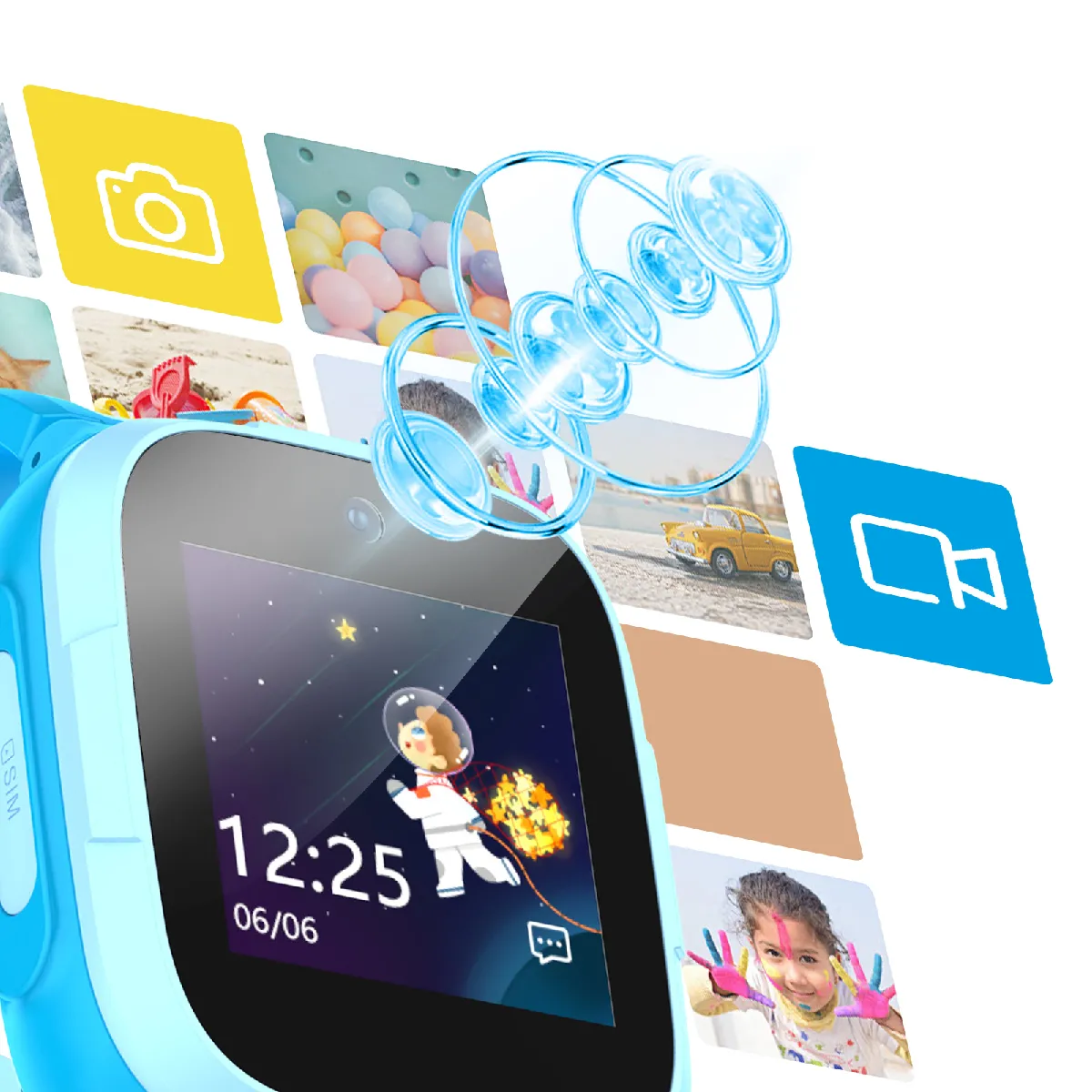 Montre connectée enfant - Appels vidéo - GPS - Bouton d'urgence - IP68