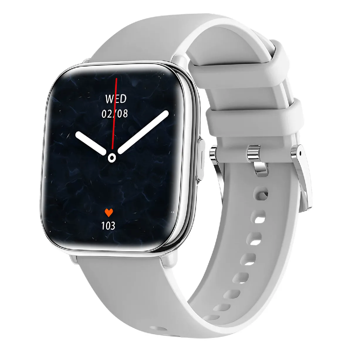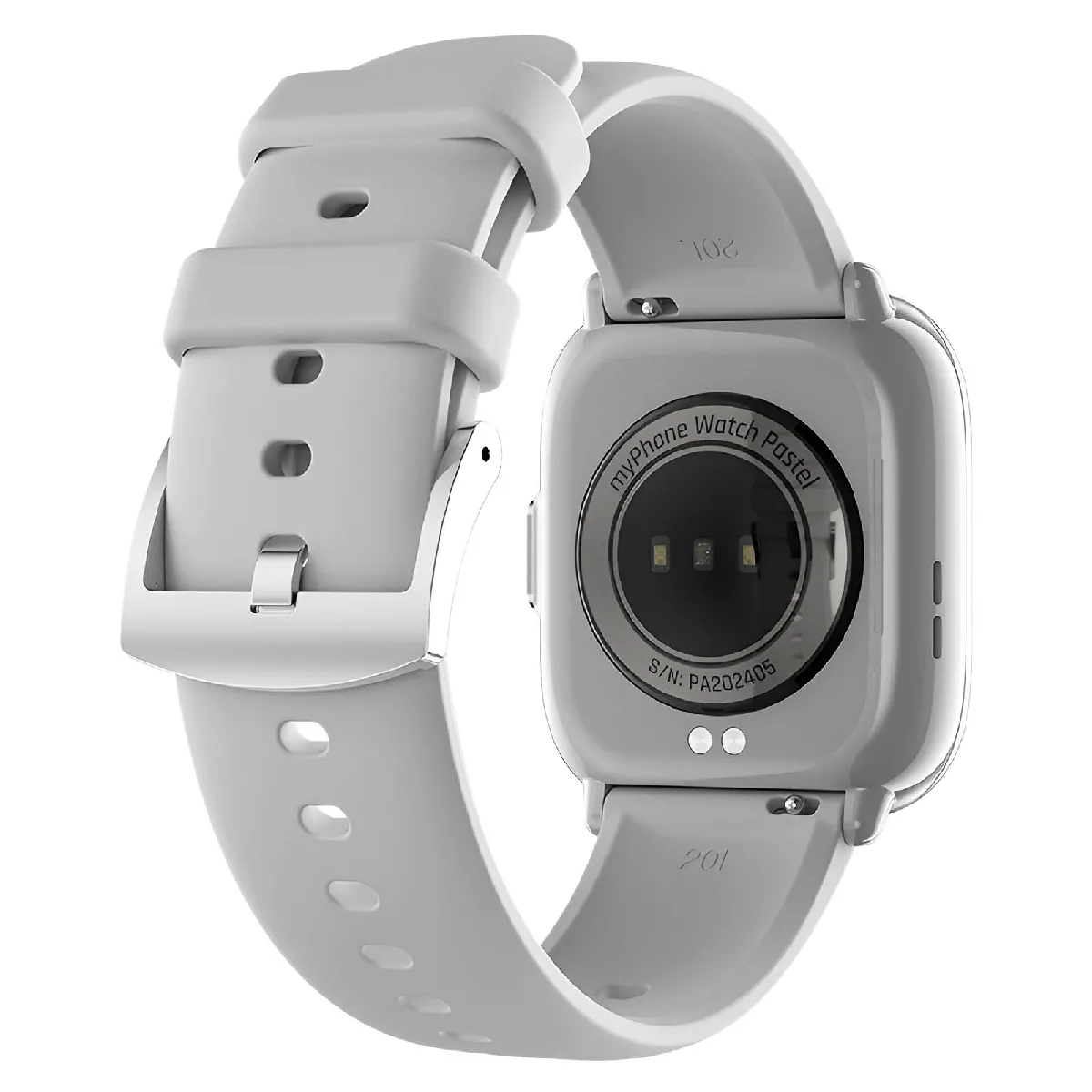 Montre connectée myPhone Pastel. Écran AMOLED 1,75" avec Always on Display (390 x 450 pixels). Appels Bluetooth et notifications en temps réel. Suivi santé : fréquence cardiaque, oxygène sanguin, tension artérielle, sommeil. Design métallique raffiné et bracelet silicone. Résistance IP67. Batterie 230 mAh avec 5 à 7 jours d'autonomie.