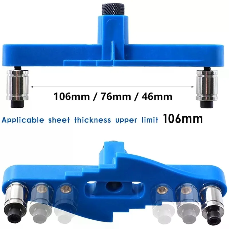 Le gabarit réunit perçage de cheville et marquage central 2 en 1 pour gagner du temps sur l'assemblage bois. La structure en ABS avec guides de perçage métalliques assure une bonne rigidité et une précision régulière. Réglable par vis, l'outil adapte la distance de perçage et de marquage selon l'entraxe souhaité, utile pour des projets variés sur bois. Les pieds de positionnement facilitent l'alignement, réduisent les décalages et aident à répéter les opérations avec cohérence.