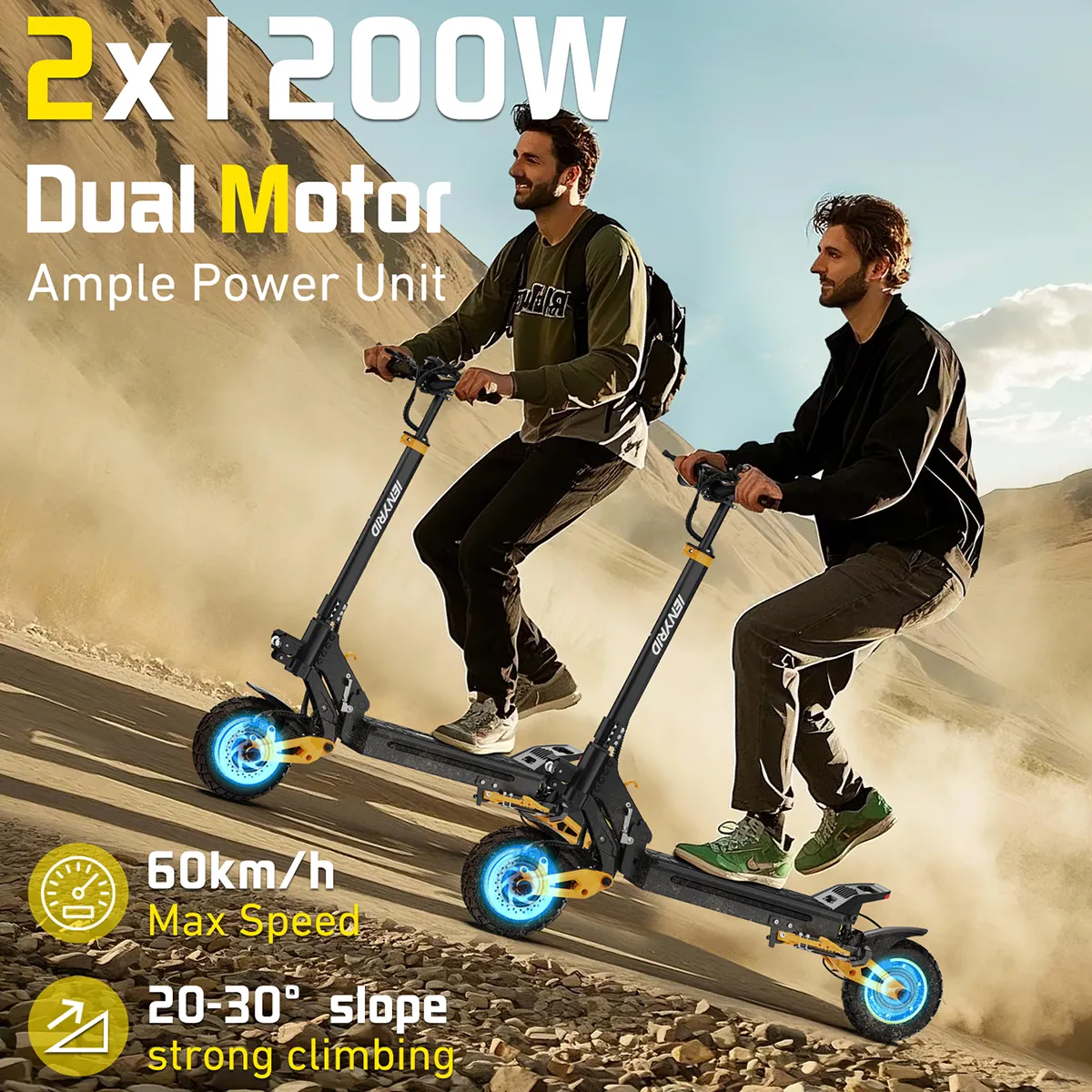 Trottinette électrique tout-terrain - Double moteur 1200W - Autonomie 50-60 km - Suspension hydraulique
