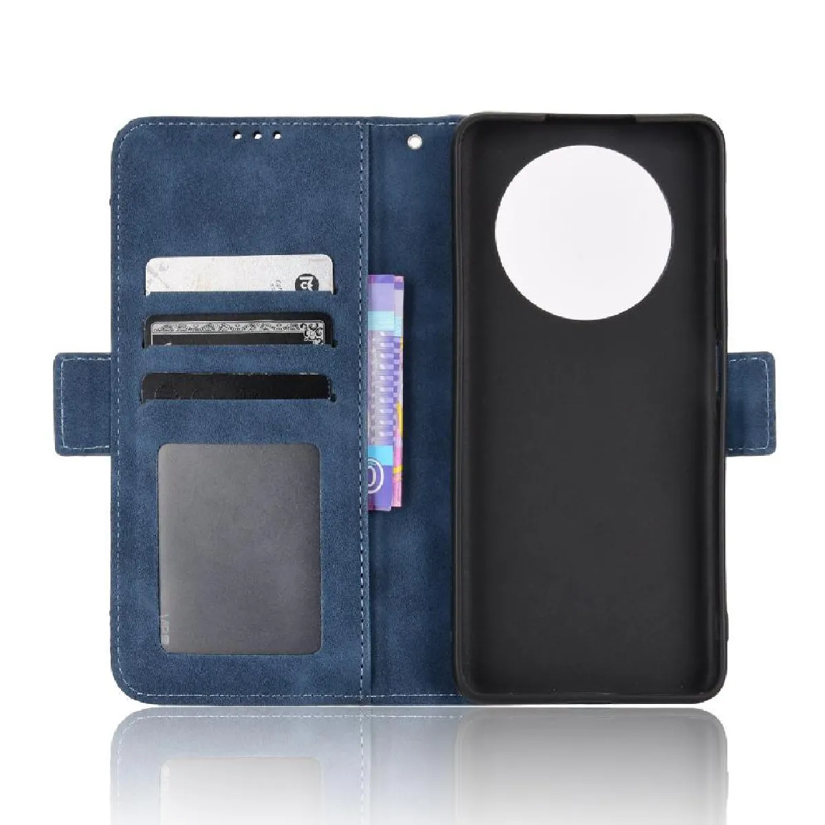 Étui portefeuille cuir PU - Fentes pour cartes et billets - Fonction support mains-libres