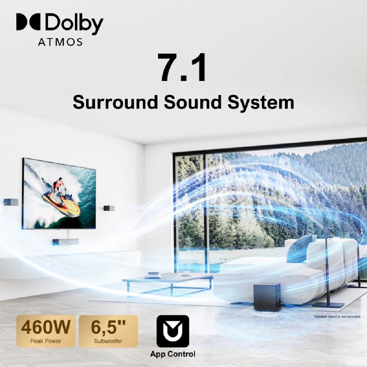 Barre de Son 7.1 Canaux - Dolby Atmos - Puissance Crête 460 W - Contrôle Intelligent