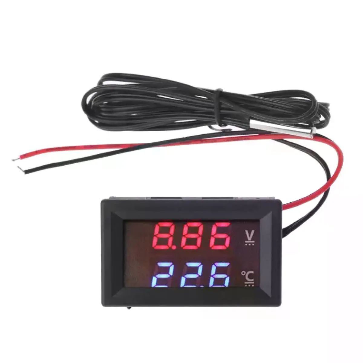 Voltmètre de voiture - Indique tension d'alimentation et température - pour voitures 12V/24V - Double afficheur