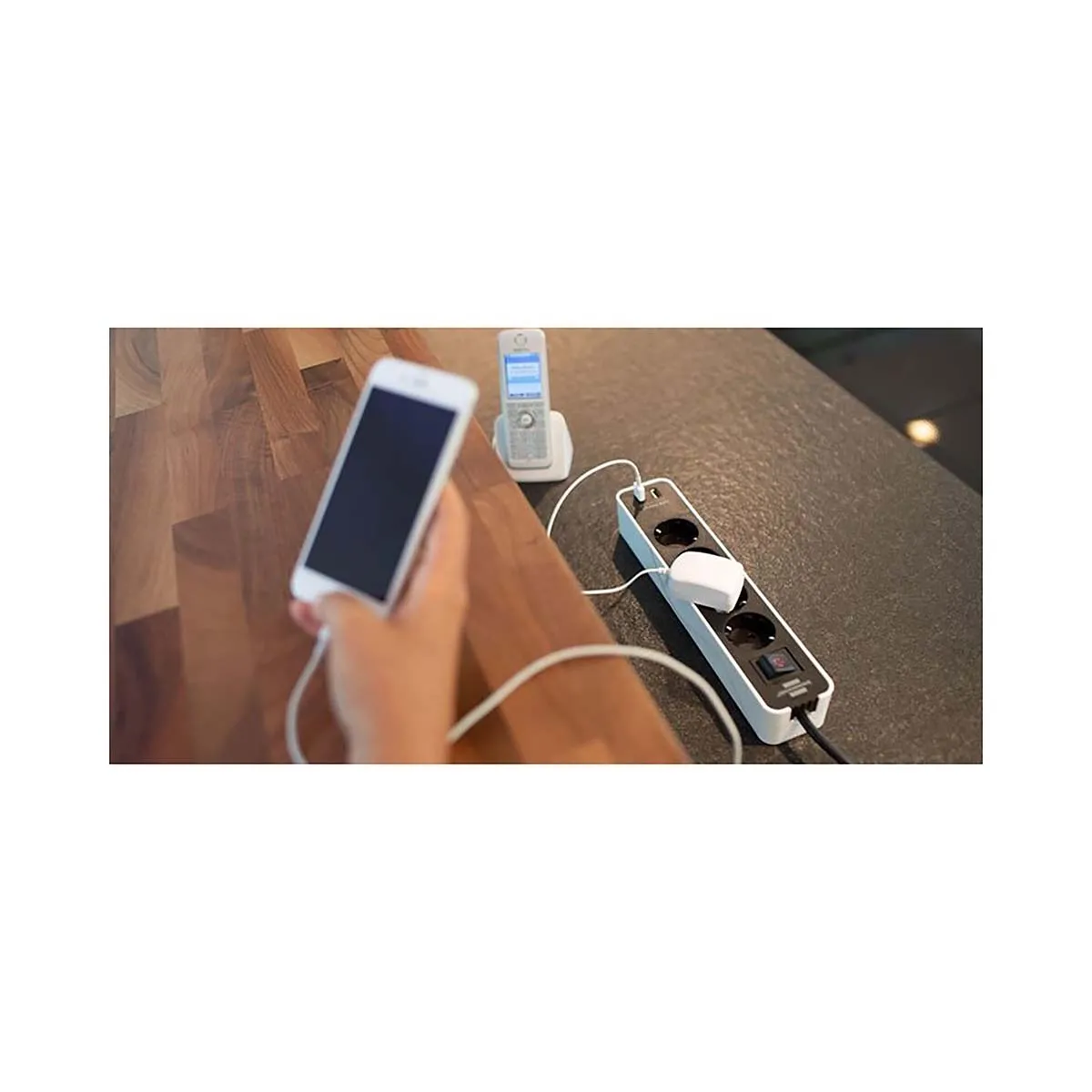 Les deux ports USB intégrés (jusqu'à 2,1 A) permettent de charger simultanément un smartphone et un accessoire sans adaptateur supplémentaire. Avec une puissance maximale de 3 500 W sous 230 V, la multiprise convient aux équipements courants du foyer. La finition Blanc / Noir s'intègre facilement dans différents espaces, tandis que le matériau en plastique assure une structure légère et simple à placer sur un plan de travail ou une étagère.