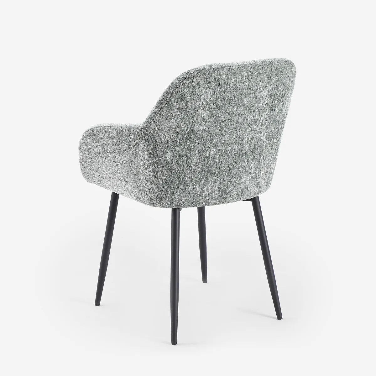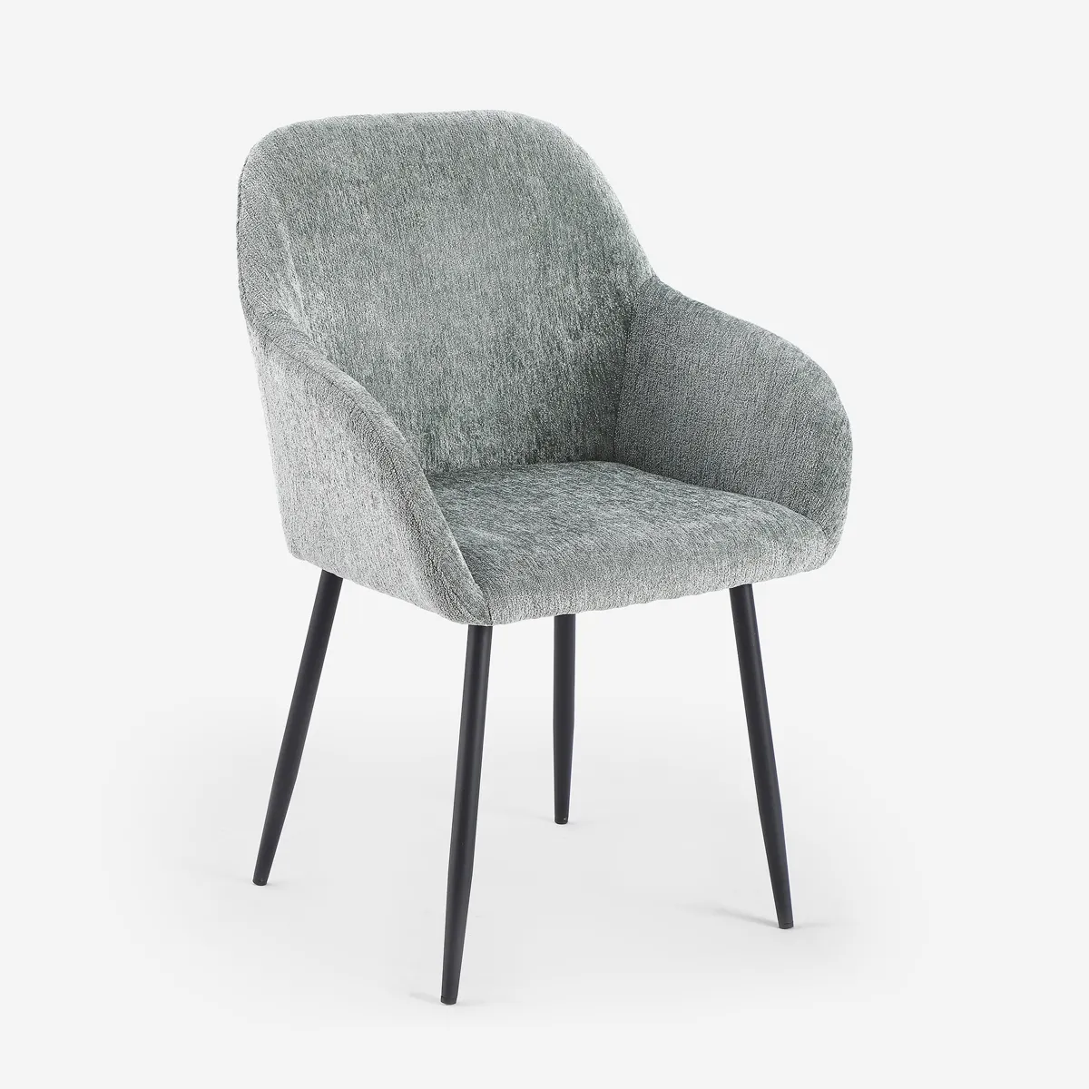 Avec sa forme ergonomique, Daiva offre un confort optimal, la rendant idéale pour les dîners et les moments conviviaux dans la salle à manger ou la cuisine. Son design polyvalent la rend adaptée à diverses solutions d'aménagement, des environnements classiques aux contemporains. L'assise se distingue par son rembourrage moelleux en mousse, enveloppé d'un doux revêtement en chenille qui ajoute une touche de raffinement. Les pieds en métal peint en noir assurent stabilité et durabilité, créant un contraste séduisant avec le tissu disponible dans les couleurs vert et beige.