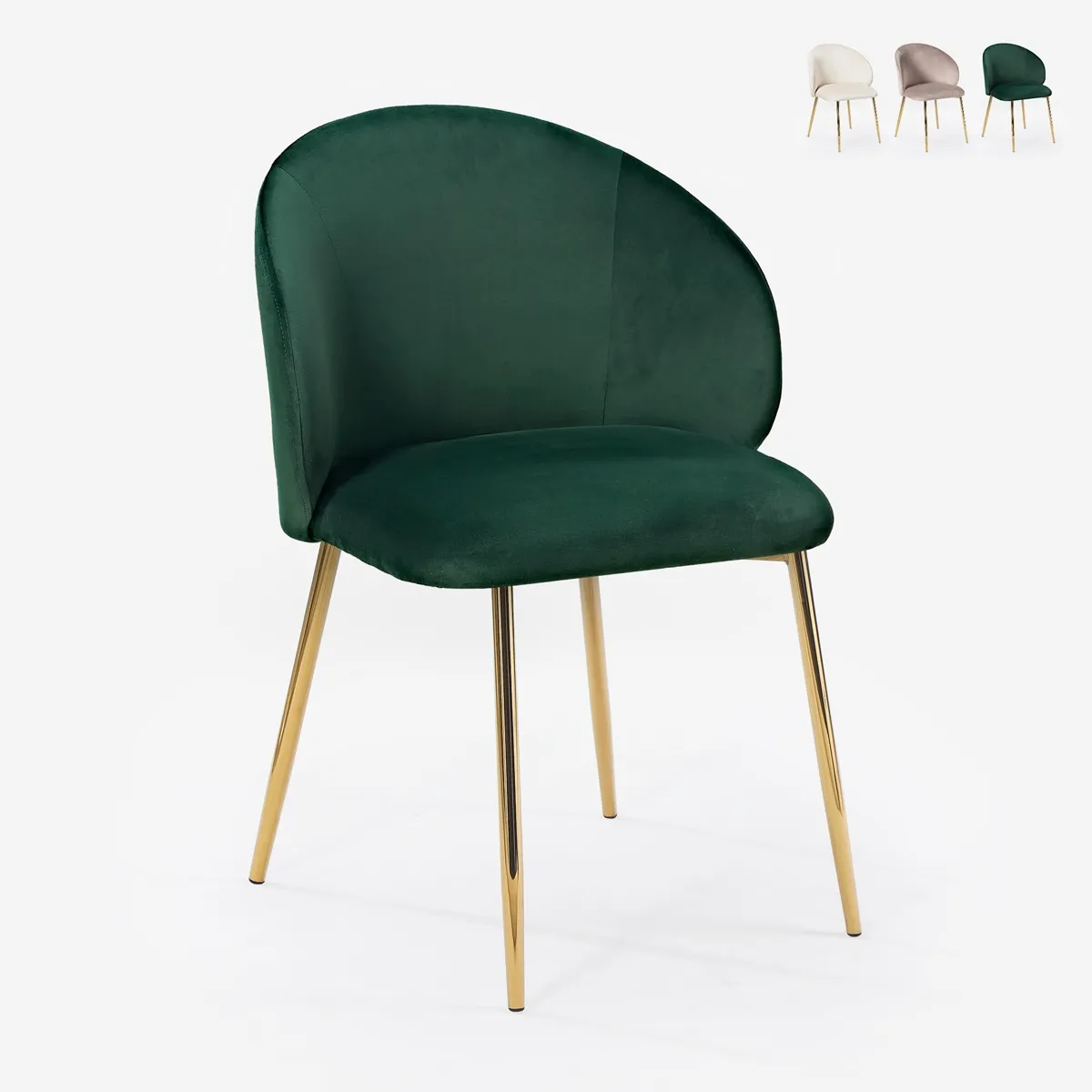 Chaise moderne en velours - Pieds dorés - Confort et design contemporain