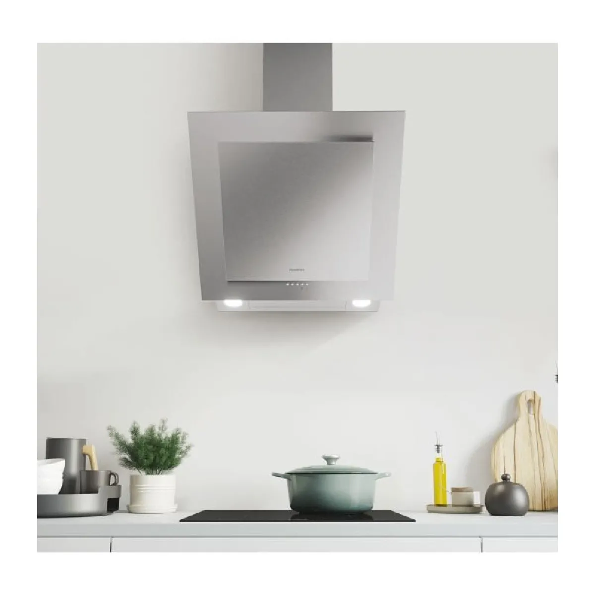 Hotte décorative murale - 60 cm - Évacuation ou recyclage - 4 vitesses - 66 dB max - Éclairage LED - Classe énergétique A - Débit jusqu’à 515 m³/h
