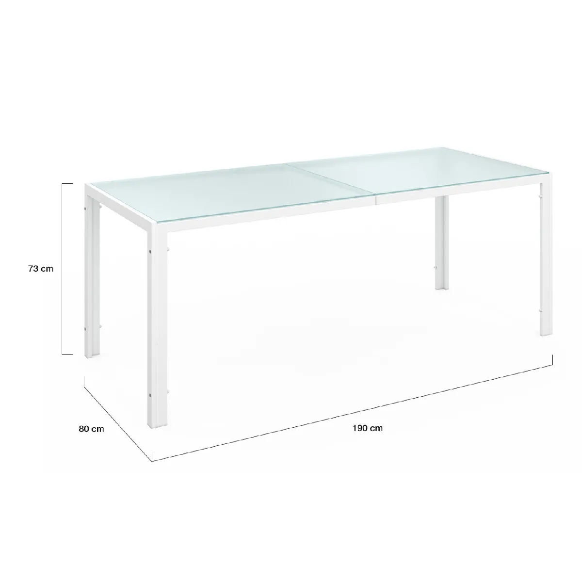Prenez vos repas en plein air et invitez votre famille et vos amis à se réunir autour de ce salon de jardin MADRID ! Avec sa capacité d'accueil de 8 personnes, profitez de moments chaleureux à plusieurs et échangez en toute convivialité ! Grâce à ses 8 chaises empilables, cet ensemble de jardin propose ergonomie et facilité d'installation. Sa structure en acier, pensée pour les repas en extérieur, lui confère robustesse et longévité.Le coloris blanc associé au coloris beige des assises confère à ce salon un look tendance et moderne qui s'intègrera parfaitement à votre extérieur !Composé d'un plateau de table en verre trempé transparent, le salon MADRID apporte modernité et design dans votre jardin ou sur votre terrasse. La structure en acier ainsi que le dossier et l'assise des chaises en textilène facilitent l'entretien de cet ensemble table et chaises de jardin.De plus, si vous souhaitez protéger votre salon de jardin, installez une housse pour chaises de jardin ainsi qu'une housse pour table de jardin.Profitez des beaux jours grâce au salon de jardin MADRID et usez de son ergonomie pour partager en famille ou entre amis des moments de bien-être ! Dimensions du salon de jardin 8 places Ensemble composé d'une table et de 8 chaises empilablesDimensions de la table : Longueur 190 cm x largeur 80 cm x Hauteur 73 cmStructure de la table et des chaises : acier Plateau de table en verre trempé : 5 mmDimensions d'une chaise : L. 51,5 x l. 68 x H. 84 cmMatière du dossier et de l'assise : textilèneColoris : acier blanc et textilène beige À monter soi-mêmeDécouvrez également tous nos salons de jardin sur notre boutique en ligne?!
