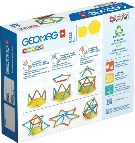 Jeu de construction magnétique pour enfants - barres et billes aimantées - structures 3D - dès 3 ans - couleurs supercolor - compatible systèmes Geomag