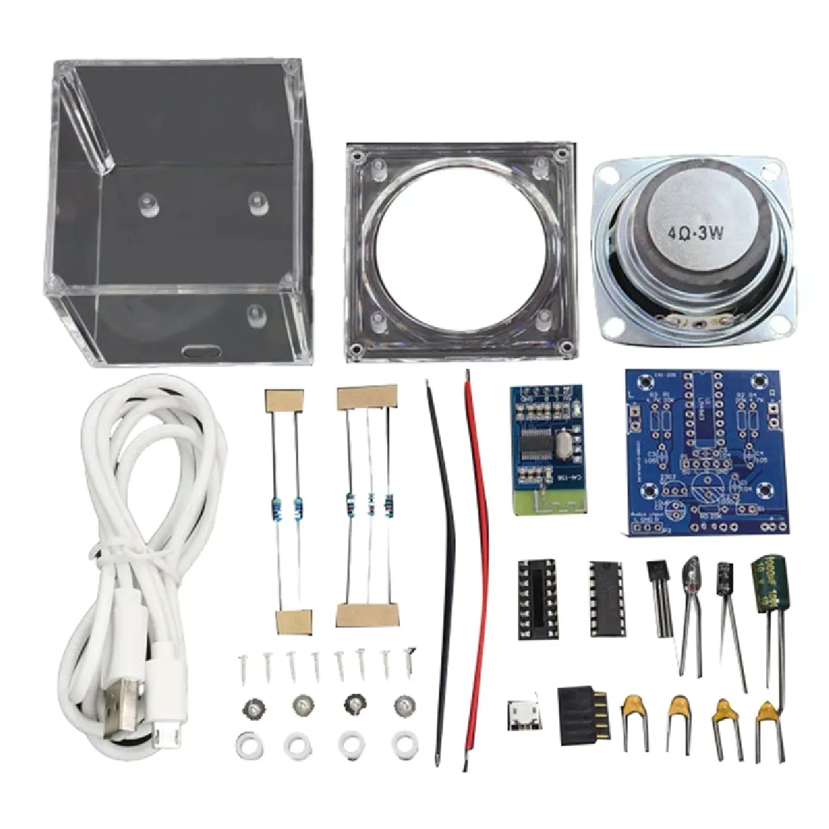 Kit de haut-parleur à monter soi-même - Amplificateur LM4863 intégré - Entrée Bluetooth et RCA - Alimentation USB 5V - 2.0 voies - Plastique transparent