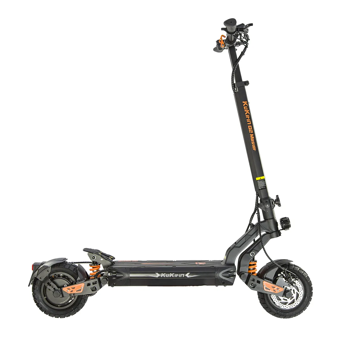 Le KuKirin G2 Master est équipé de deux moteurs de 1000 W, offrant une puissance et des performances impressionnantes. Ce système à double entraînement permet à la trottinette de s'attaquer sans effort aux pentes en montée, aux terrains accidentés et aux chemins difficiles, ce qui en fait le choix idéal pour les rues urbaines et les aventures hors route. Que vous rouliez sur des routes plates ou que vous exploriez des environnements plus exigeants, le G2 Master offre une puissance et une stabilité supérieures.