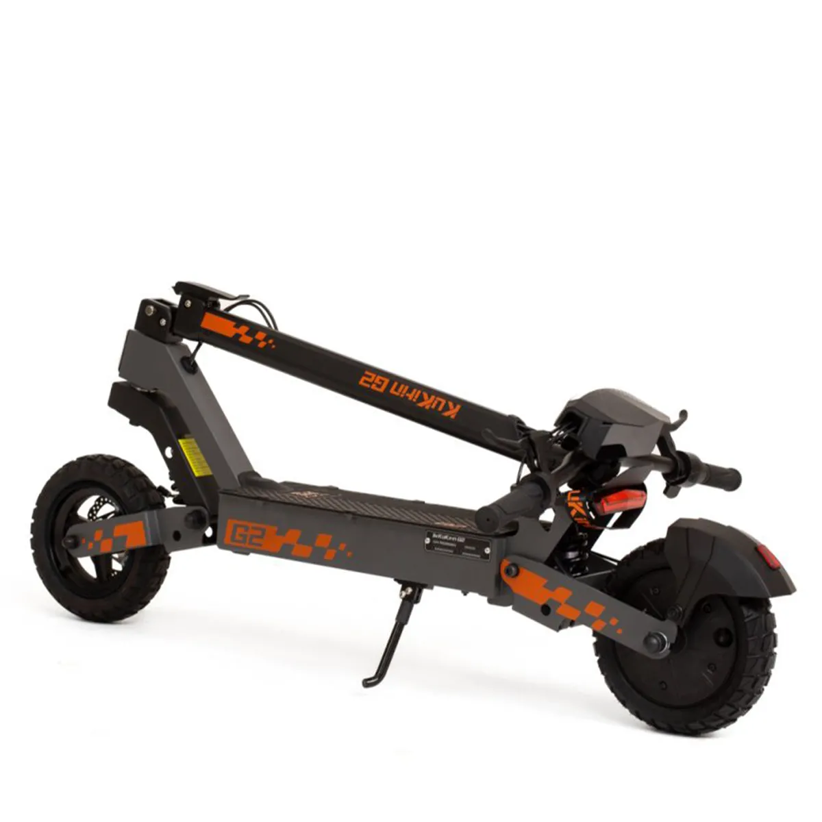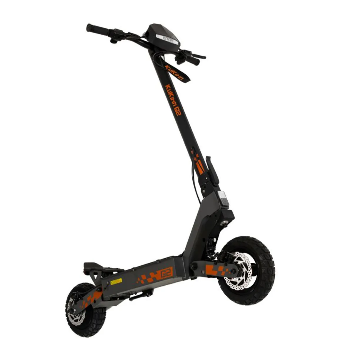 Le KuKirin G2 est doté d'un mécanisme de pliage rapide à un seul bouton, ce qui le rend incroyablement facile à plier et à ranger. La conception compacte du scooter garantit qu'il s'intègre facilement dans les coffres de voiture ou les espaces restreints, ce qui le rend idéal pour les navetteurs. Pesant 26 kg, il est léger mais durable, conçu pour la portabilité et la commodité, afin que vous puissiez l'emporter avec vous partout où vous allez, que ce soit pour le travail ou les aventures du week-end.