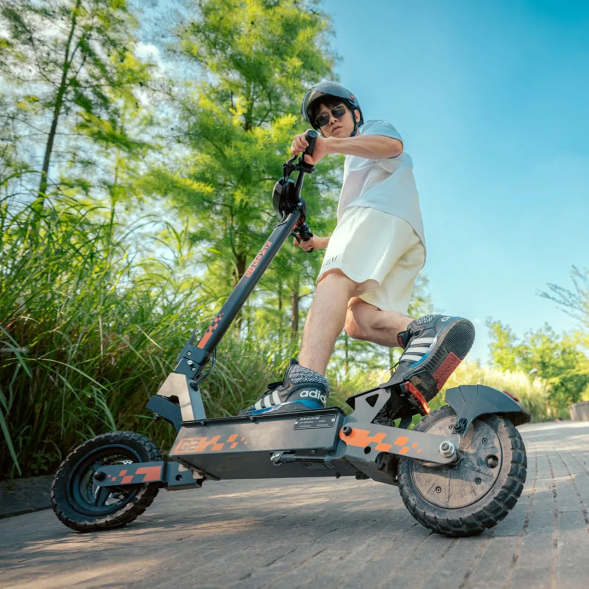 Avec son moteur de moyeu intégré de 800 W, le KuKirin G2 offre une expérience d'accélération fluide, grâce à son mode d'accélération à onde sinusoïdale. Le moteur fournit un boost puissant, permettant des vitesses allant jusqu'à 45 km/h (à 65 kg de charge). Avec trois modes de vitesse réglables, la trottinette peut facilement s'adapter à votre style de conduite, que vous vous déplaciez à un rythme tranquille ou que vous recherchiez une conduite palpitante. Il fournit une puissance constante, rendant chaque trajet agréable.