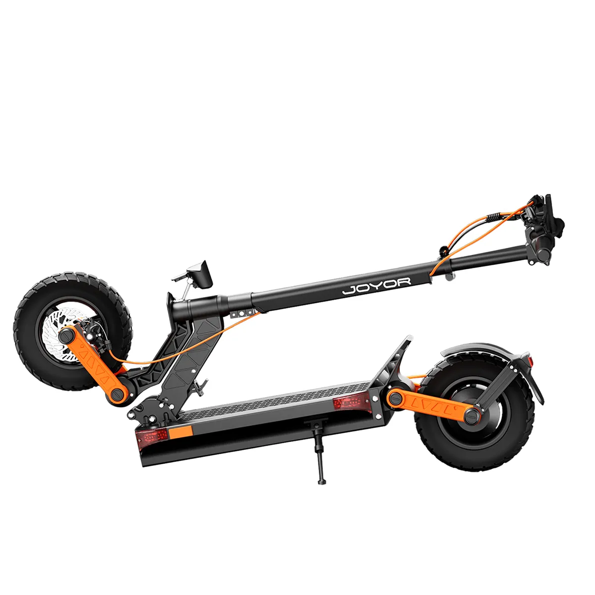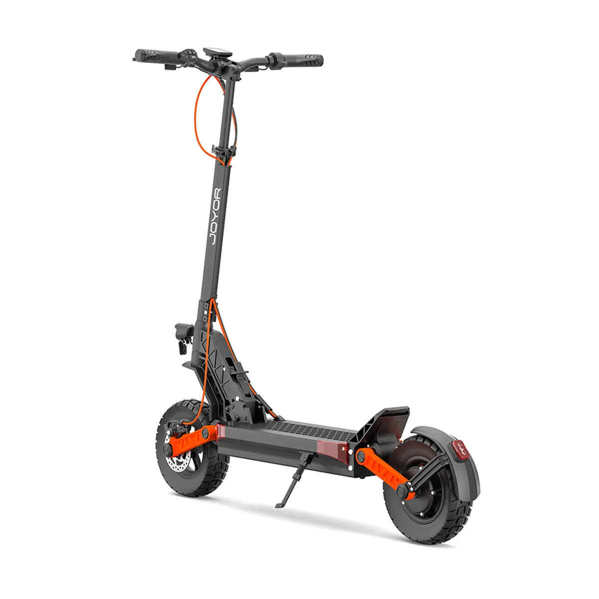 Conçu pour le confort et la stabilité, le JOYOR S5-Z est doté de deux systèmes de suspension avant et arrière, associés à des pneus pneumatiques hautes performances de 10"x3". Cela garantit une conduite en douceur sur les terrains accidentés et dans les rues de la ville. De plus, la possibilité de passer aux pneus tout-terrain améliore la polyvalence, ce qui rend ce scooter parfait pour une variété d'environnements.
