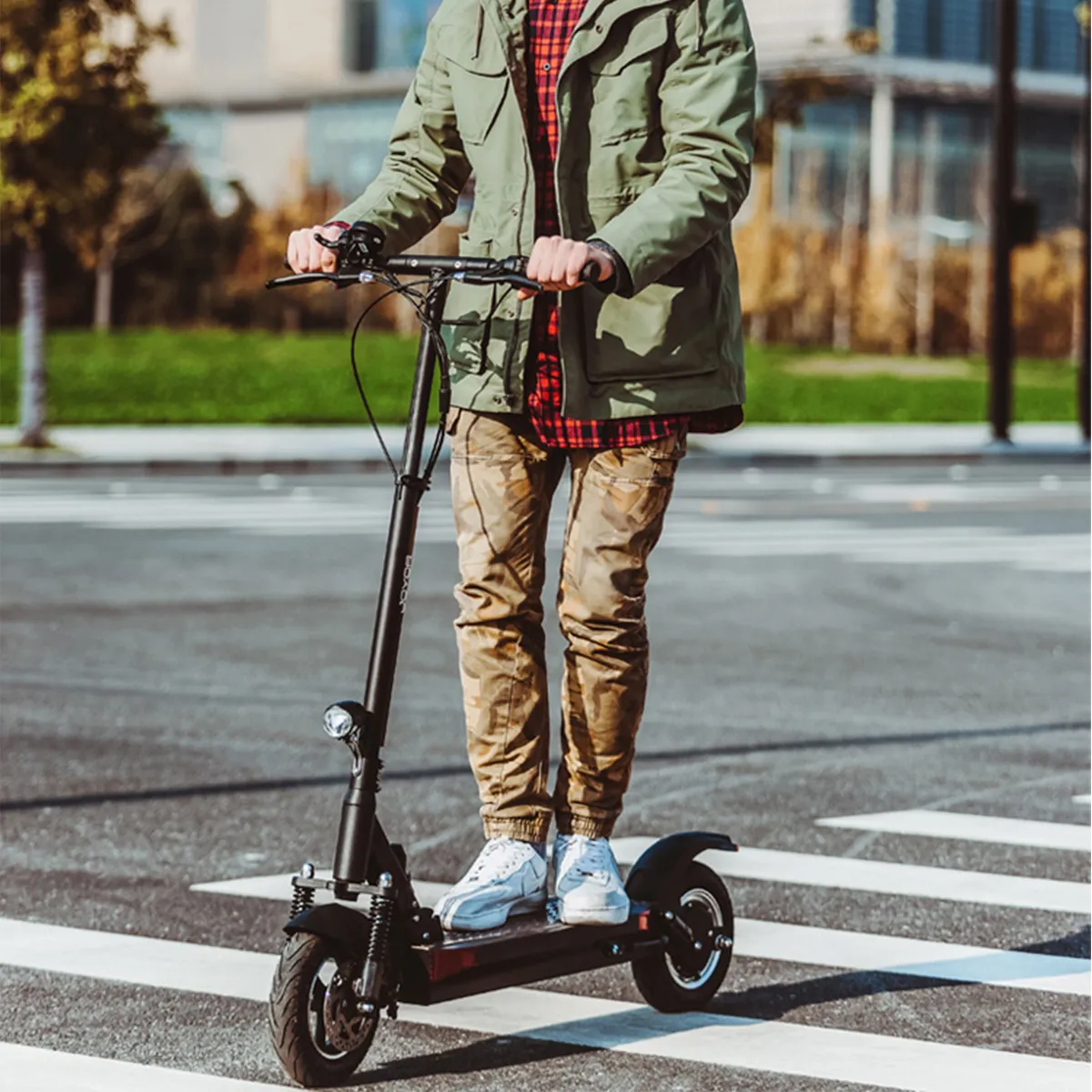 Constructed from aviation-grade aluminum alloy, the frame combines low density with exceptional strength and corrosion resistance. At just 24 kg, the scooter is lightweight, portable, and easy to handle in urban and outdoor environments.