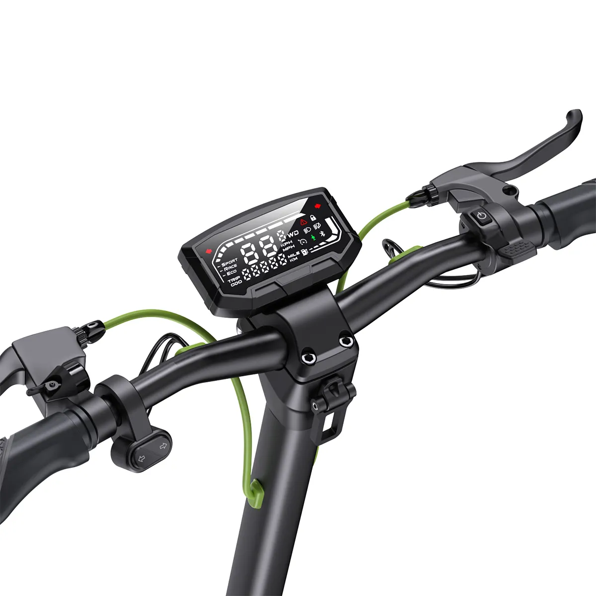 Comprend des clignotants de guidon, un phare et un feu arrière pour une visibilité accrue, avec un écran LCD pour une surveillance facile de la vitesse, de l'autonomie et d'autres paramètres. De plus, il dispose d'un régulateur de vitesse et d'une connectivité d'application pour un contrôle utilisateur amélioré.