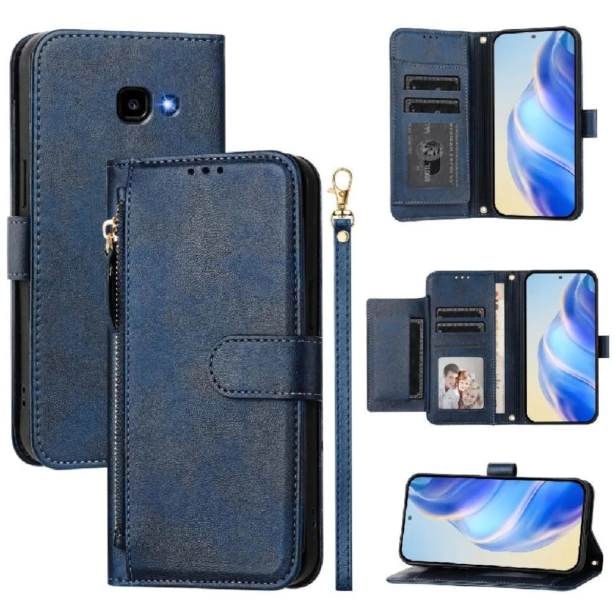 Coque pour Flip Étui Pour Samsung Galaxy A5 2017 Titulaire De La Carte Fermeture Éclair Cuir PU Magnétique GANGXUN Bleu